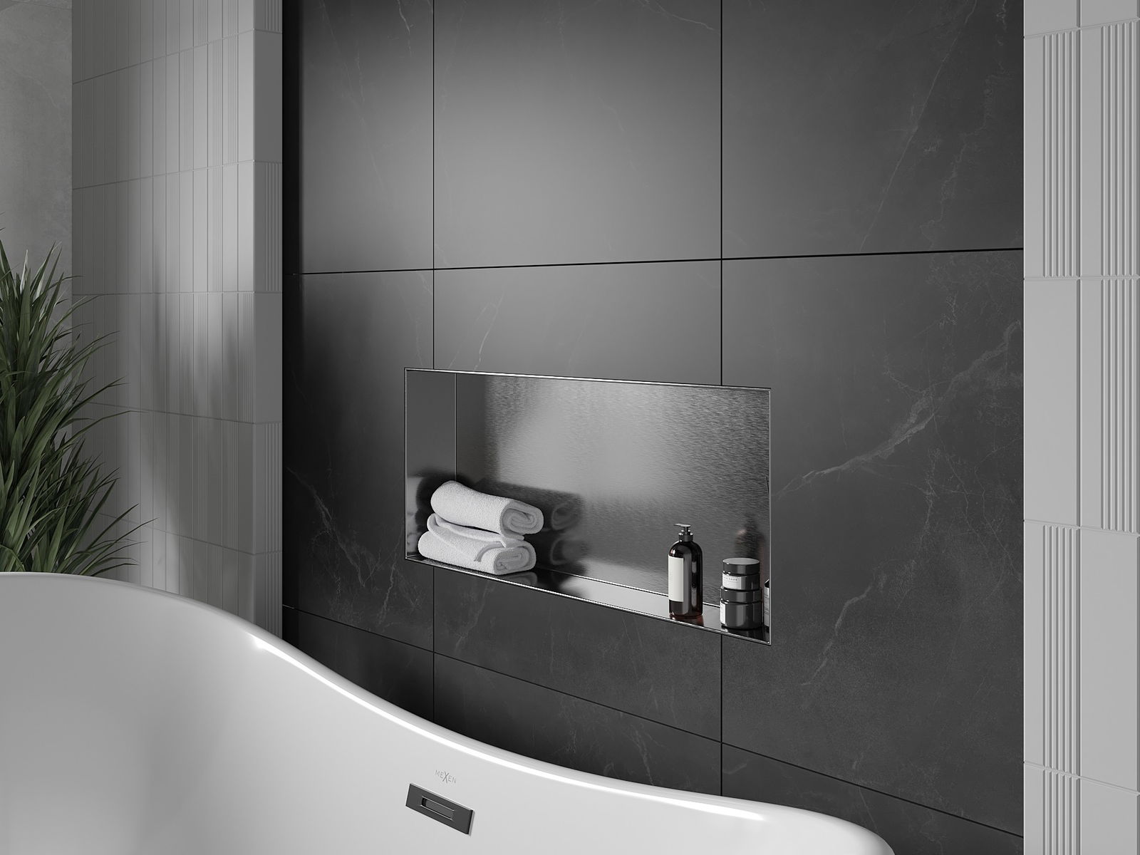 Mexen X-Wall-NR recessed shelf without flange 75 x 30 cm, brushed gun grey - 19E1753010