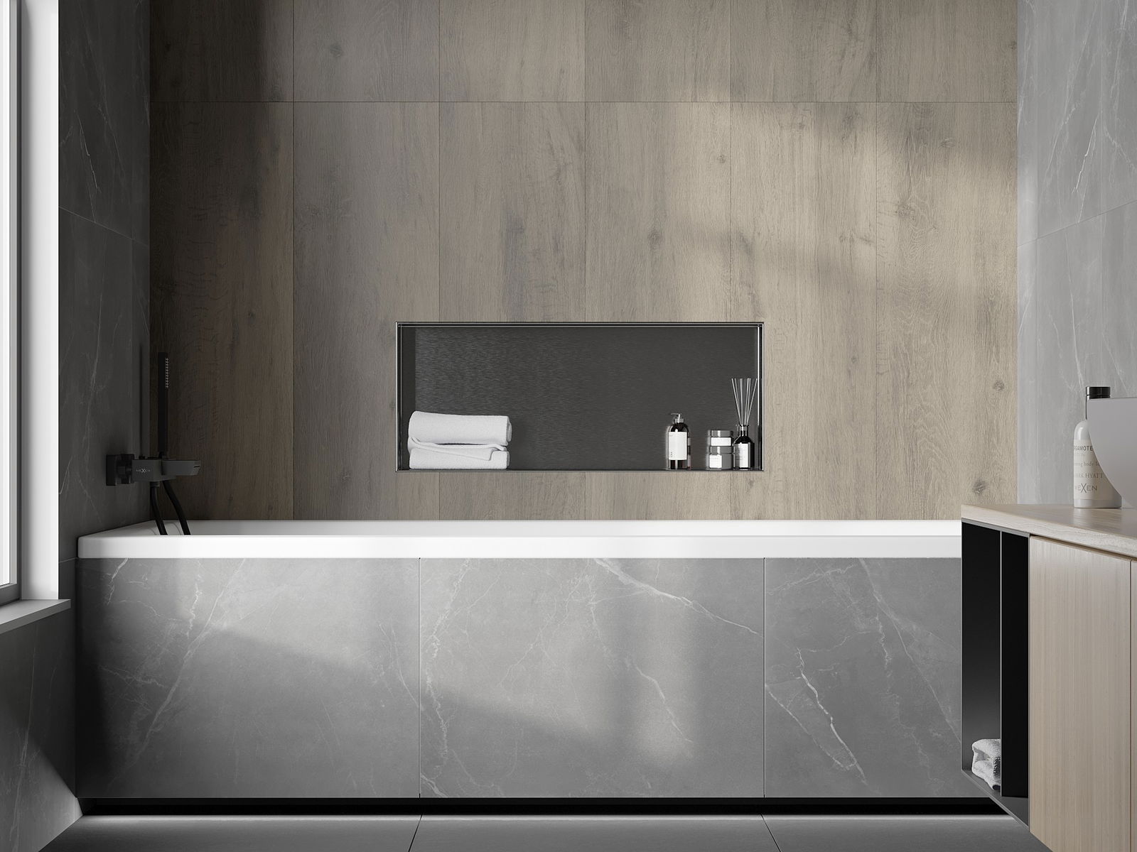 Can be installed in the wall or in specially prepared housing. It is an extremely modern and functional solution, allowing to save space and match the product to the interior aesthetics, creating a cohesive composition.