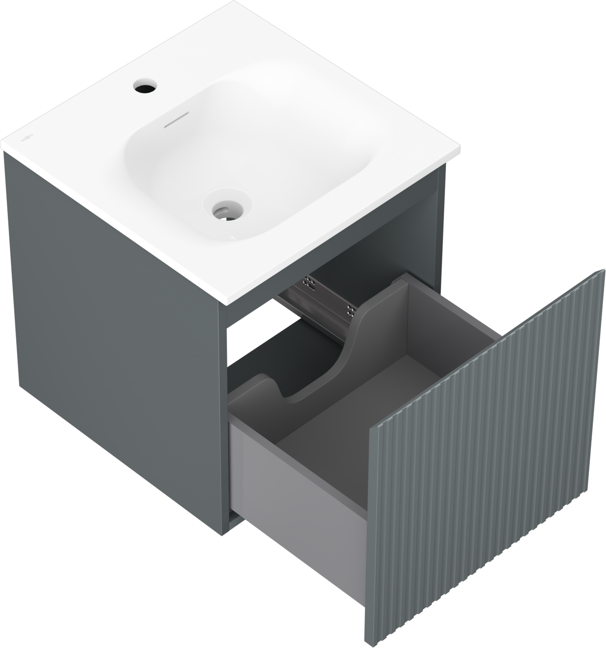 The washbasin has an opening where we can install a tap. This allows for saving valuable space in the bathroom and enhances its aesthetics. This solution also makes it easier to maintain cleanliness around the washbasin.