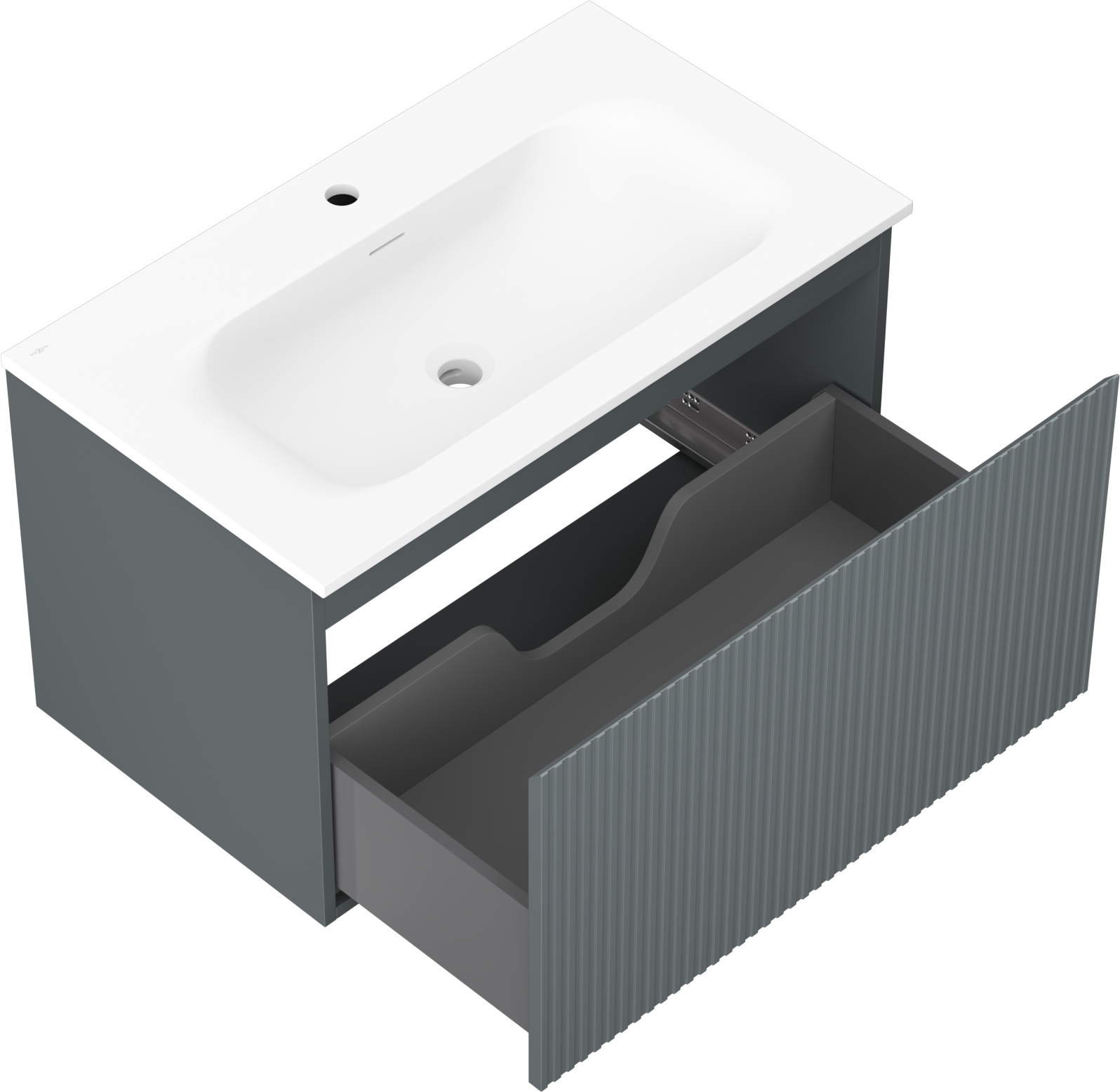 The cutout in the drawer is designed in such a way as to accommodate the siphon, which is essential in sink installations. This allows the furniture to be fully functional without having to give up drawer space for the installation.