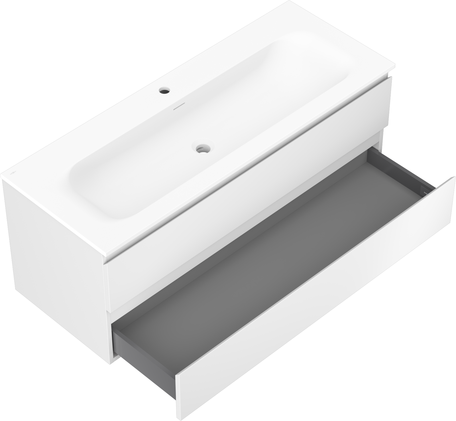 The washbasin has an opening where we can install a tap. This allows for saving valuable space in the bathroom and enhances its aesthetics. This solution also makes it easier to maintain cleanliness around the washbasin.