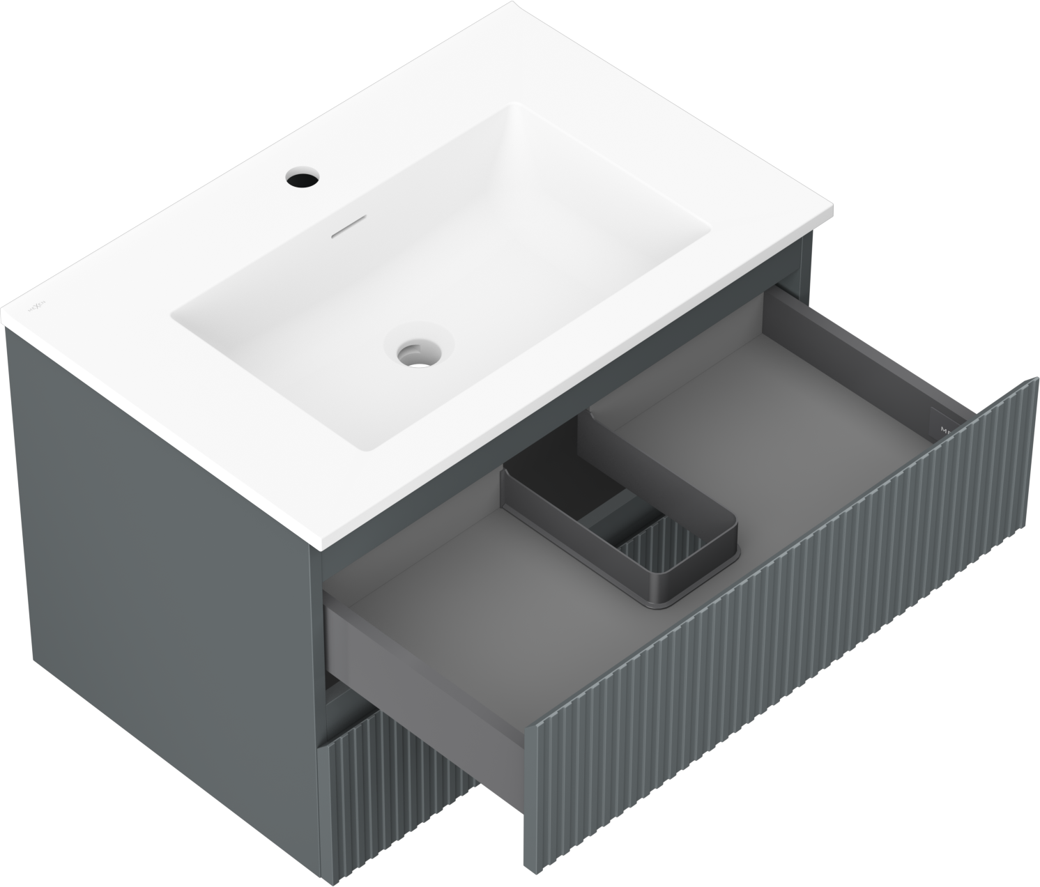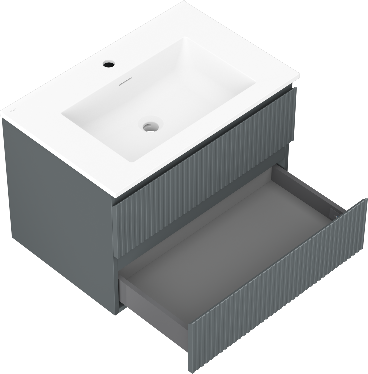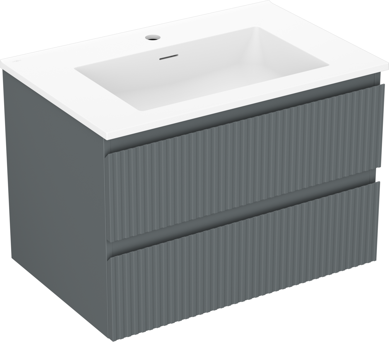 Mexen Rivel bathroom cabinet 70 cm with sink Otis, 2 drawers, fluted, graphite matte/white matte - 91A20-07047-2-BFF66-W18M0