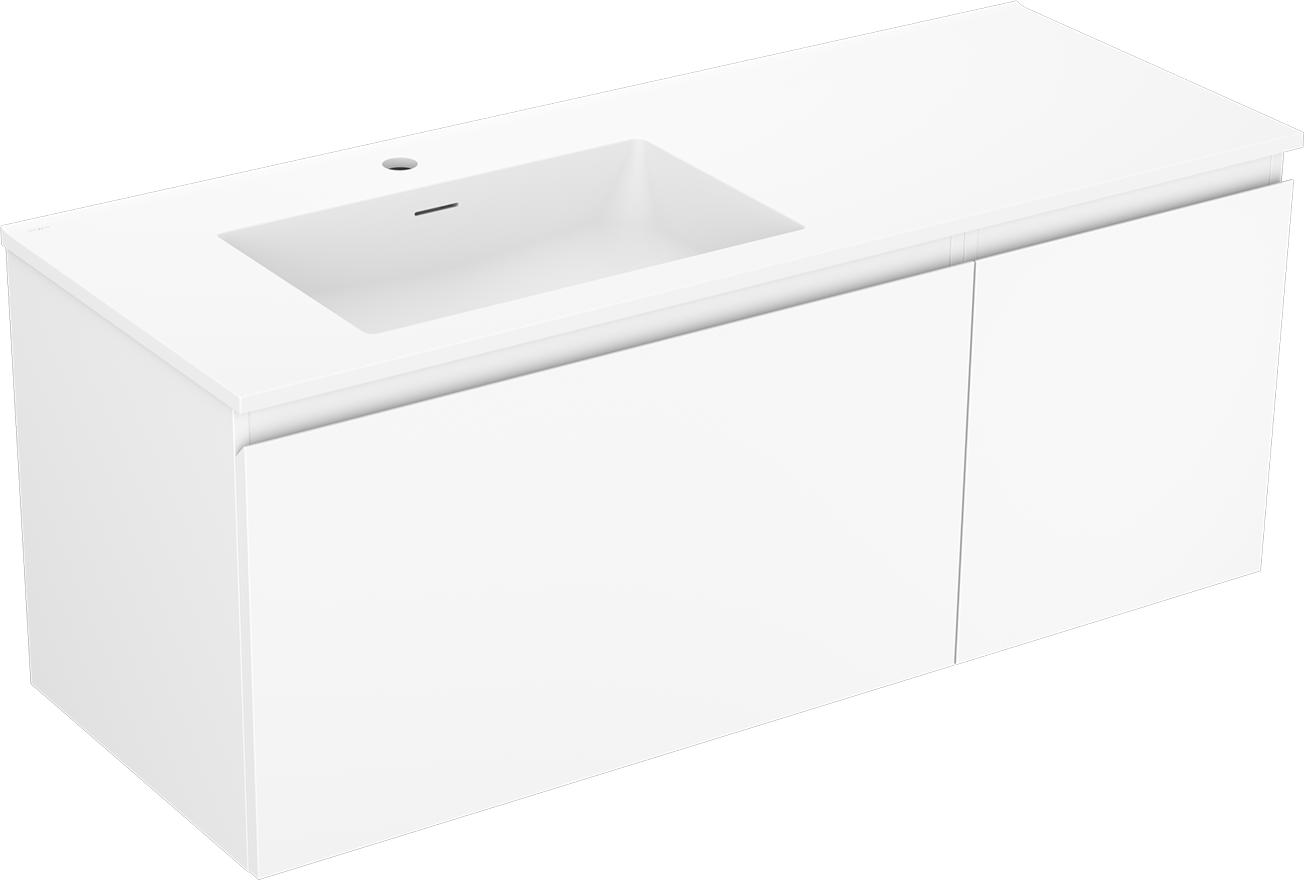 Mexen Orio bathroom cabinet 120 cm with Otis left sink, 1S, 1D, white matte - 91A13-12047-3-BBFF01-W18L01