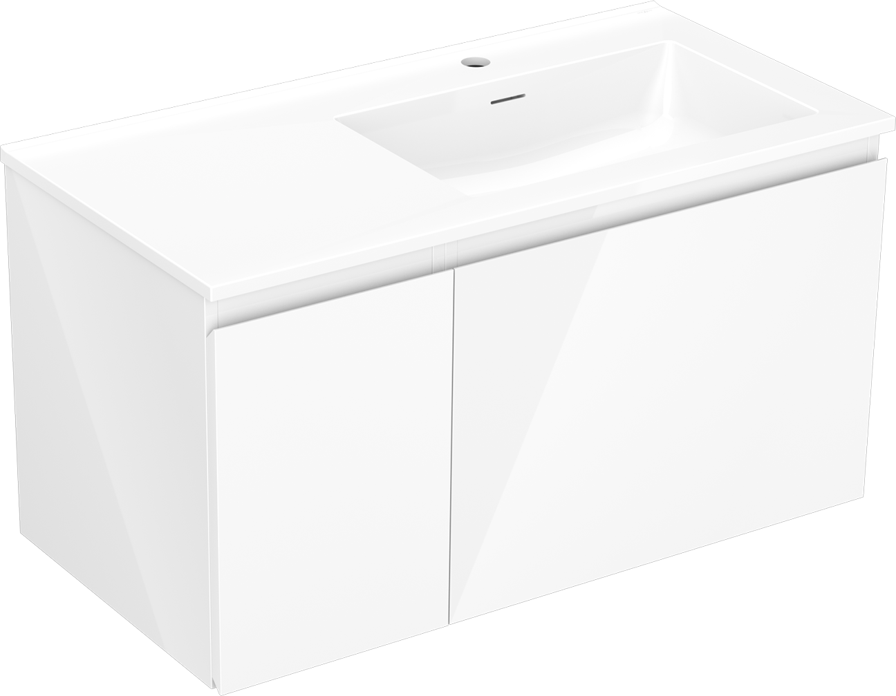 Mexen Orio bathroom cabinet 90 cm with right Otis sink, 1S, 1D, white gloss - 91A13-09047-3-BBFF00-W18P00