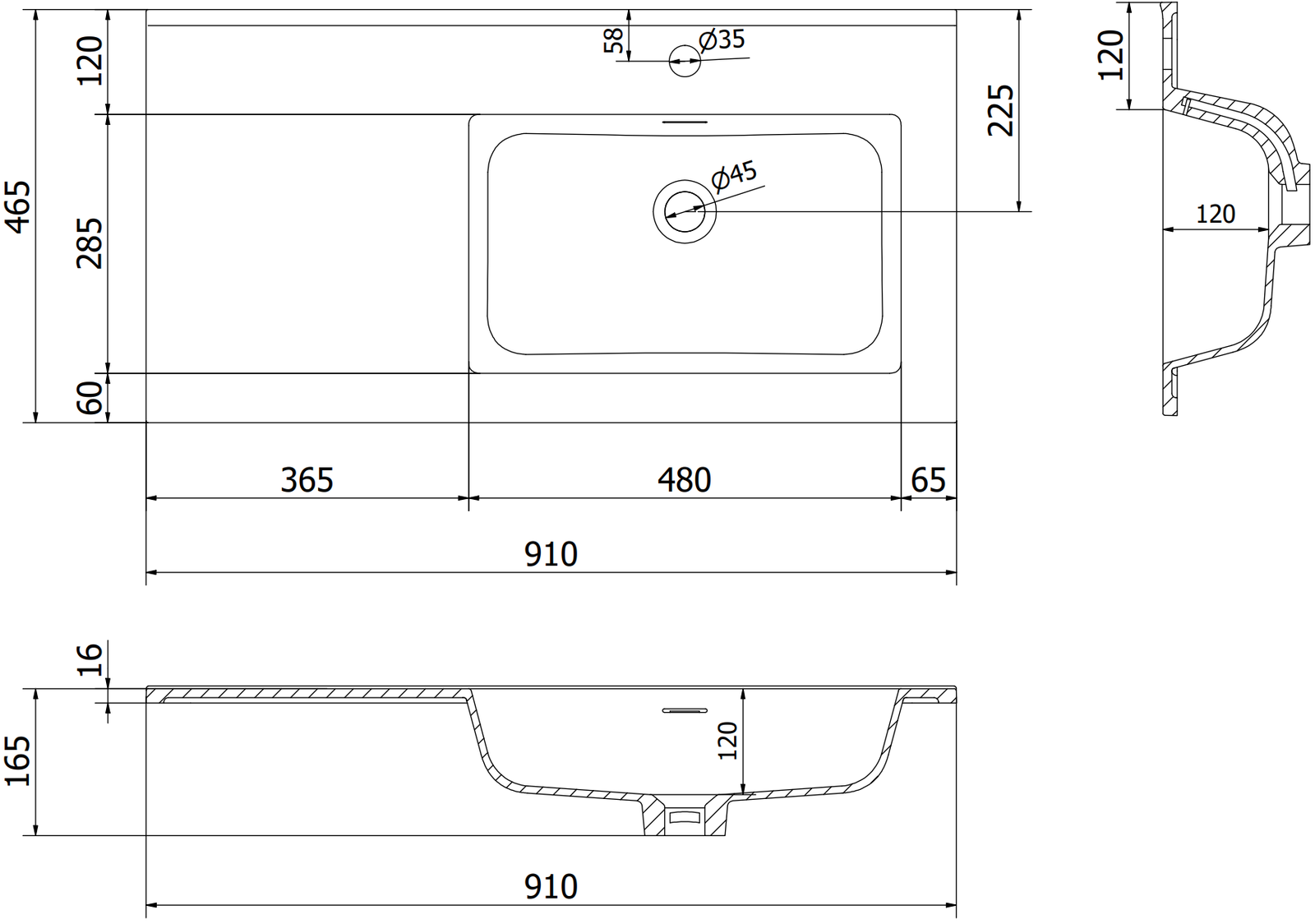 Overflow hole: Yes