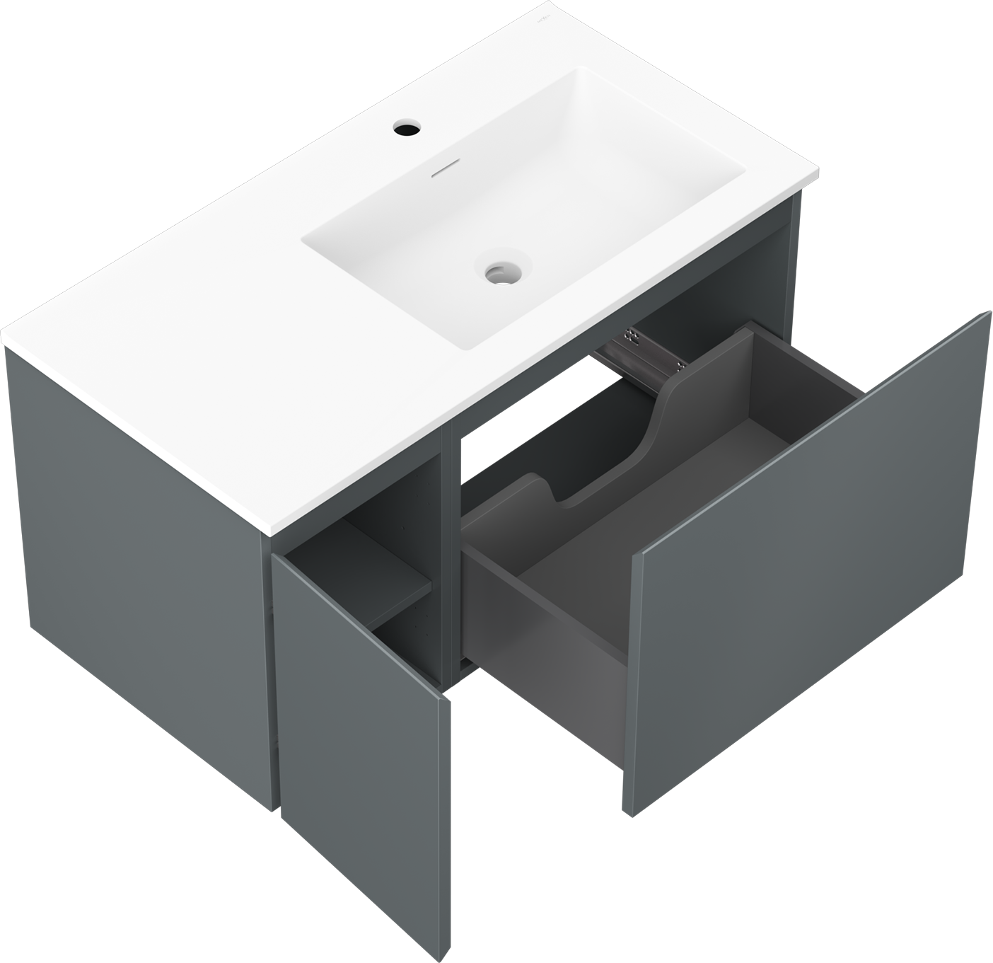 The cutout in the drawer is designed in such a way as to accommodate the siphon, which is essential in sink installations. This allows the furniture to be fully functional without having to give up drawer space for the installation.
