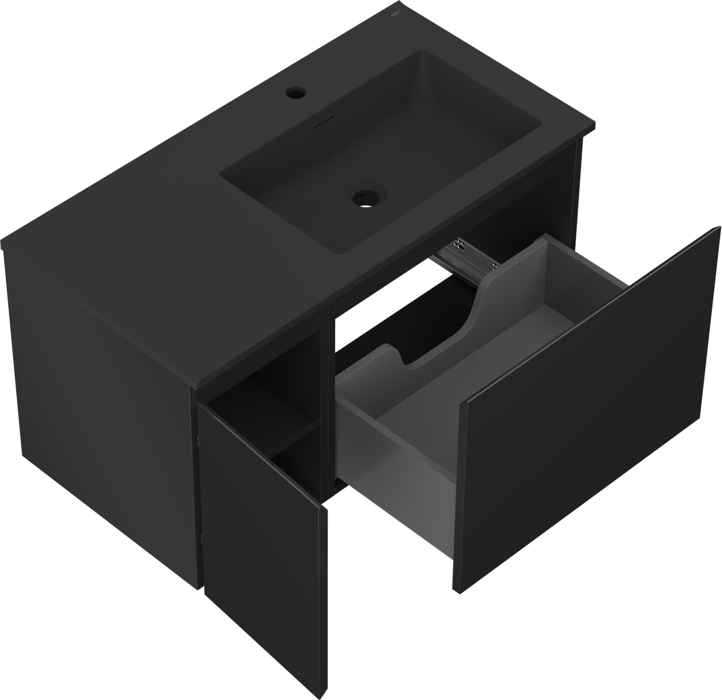 Mexen Orio bathroom cabinet 90 cm with right Otis sink, 1S, 1D, black matte - 91A13-09047-3-BBFF71-W18P71