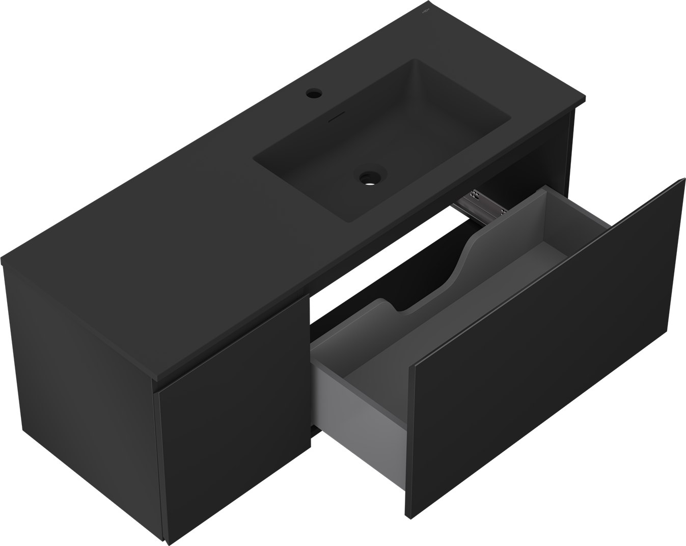 Mexen Orio bathroom cabinet 120 cm with Otis right sink, 1S, 1D, black matte - 91A13-12047-3-BBFF71-W18P71