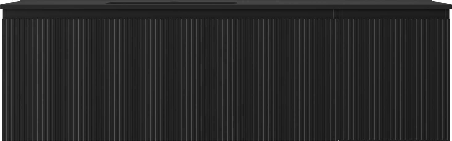 Mexen Rivel bathroom cabinet 160 cm with Otis left sink, 1S, 1D, fluted, black matte - 91A23-16047-3-BBFF71-W18L71