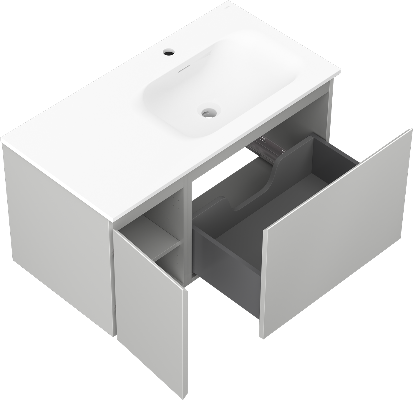 The cutout in the drawer is designed in such a way as to accommodate the siphon, which is essential in sink installations. This allows the furniture to be fully functional without having to give up drawer space for the installation.
