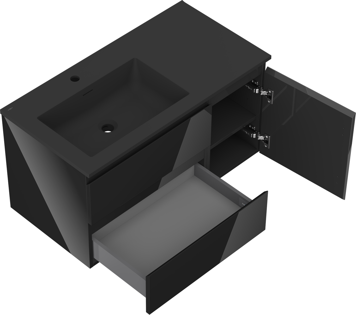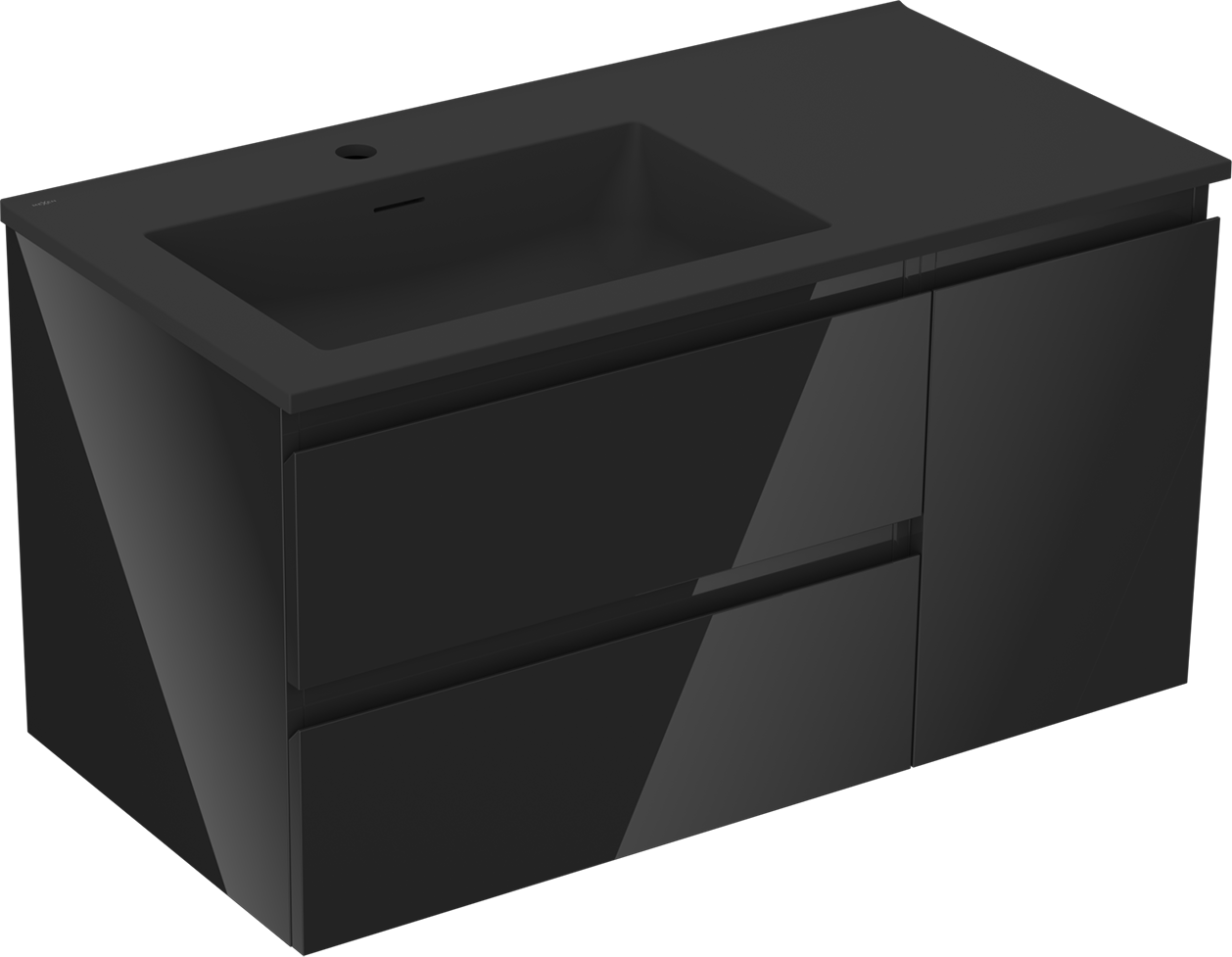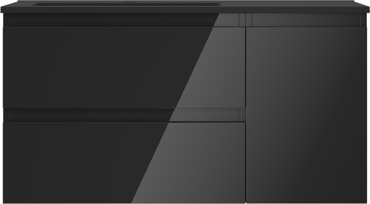 Mexen Orio bathroom cabinet 90 cm with Otis left washbasin, 2S, 1D, black gloss/black matte - 91A13-09047-3-BBFFF70-W18L71