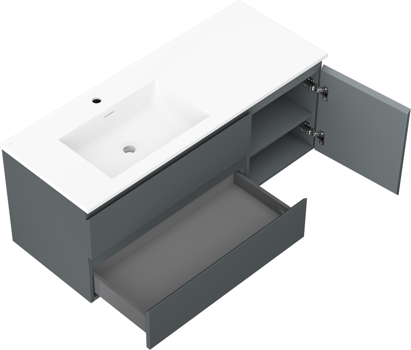 Our modular bathroom furniture can be combined in various colour configurations, allowing for complete personalisation. You can choose both the appearance and functions of individual elements, enabling you to adapt the furniture to your own stylistic and functional preferences.