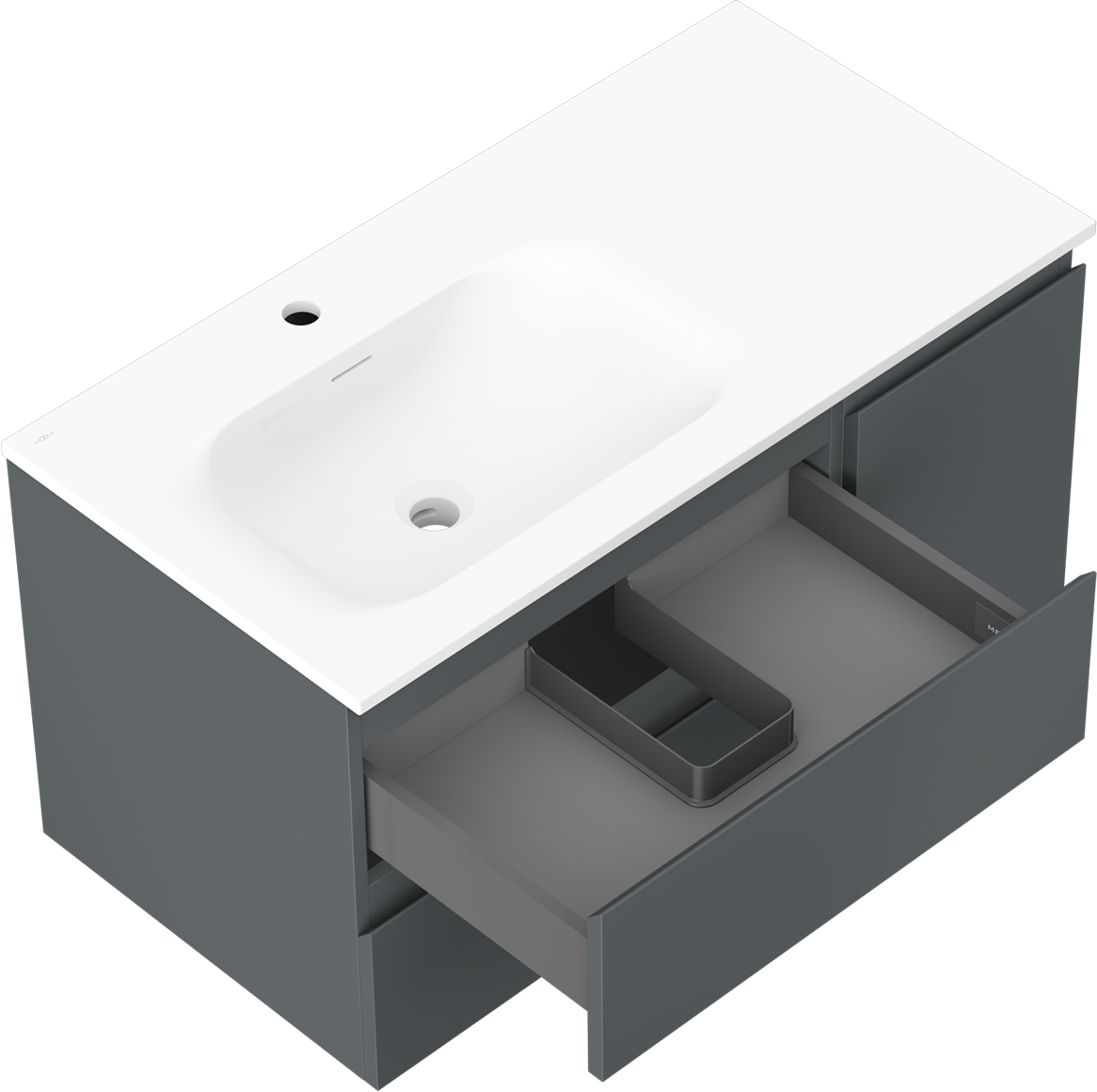 The cutout in the drawer is designed in such a way as to accommodate the siphon, which is essential in sink installations. This allows the furniture to be fully functional without having to give up drawer space for the installation.