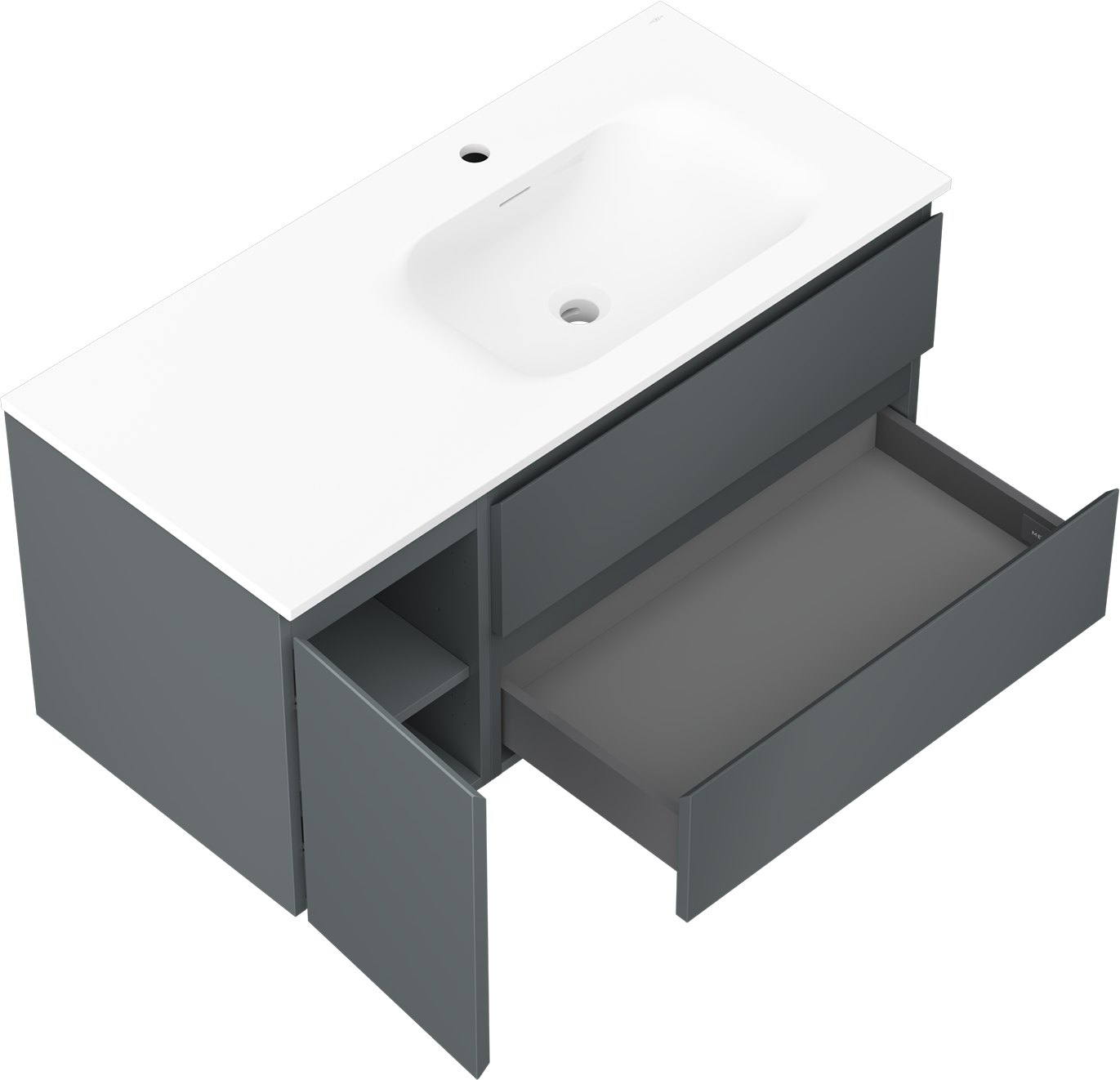 Mexen Orio 100 cm bathroom cabinet with Vela sink right, 2S, 1D, matte graphite/white matte - 91A13-10047-3-BBFFF66-W23P01