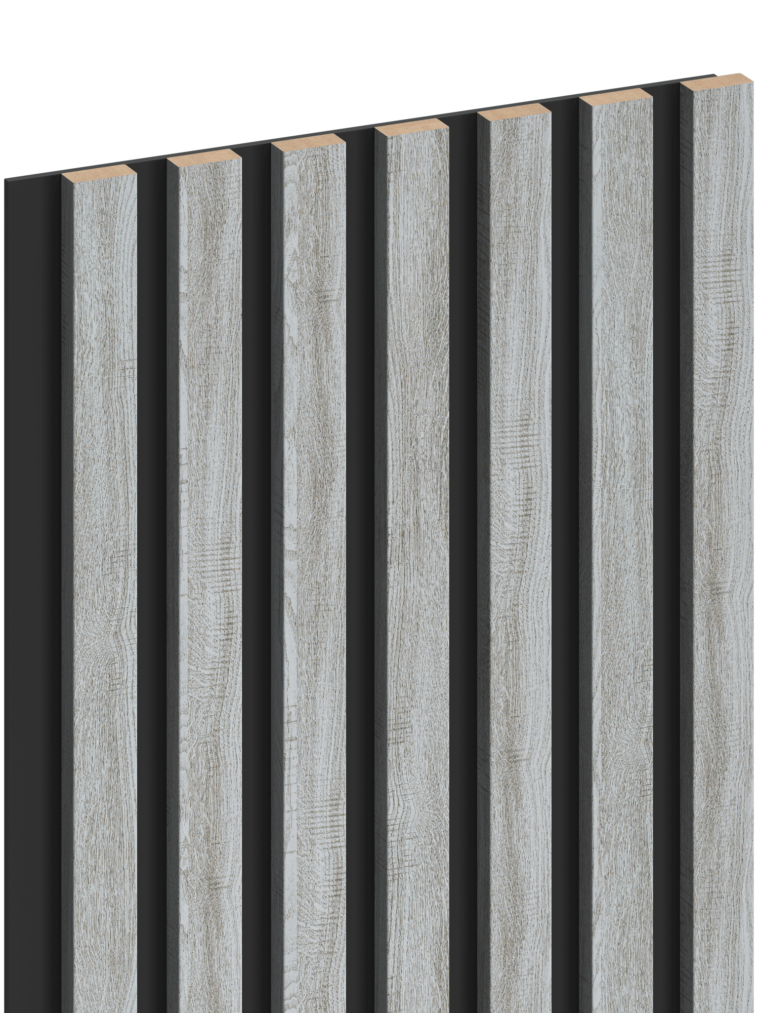 Slat material: MDF strip + melamine veneer