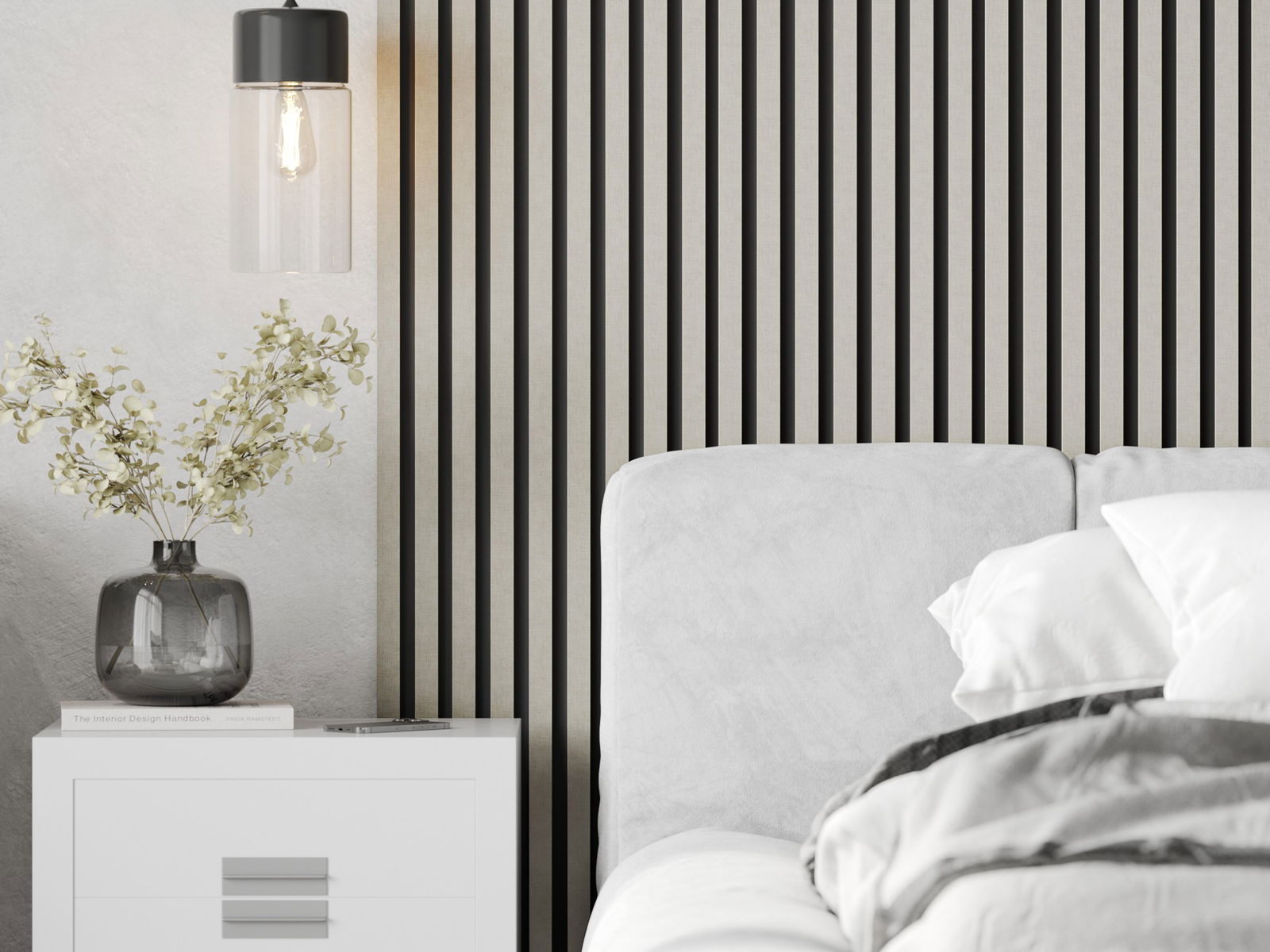 Slat material: MDF strip + melamine veneer