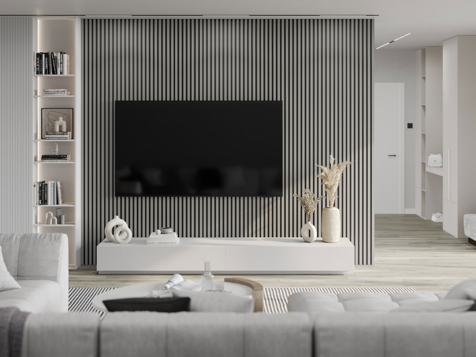 Slat material: MDF strip + melamine veneer