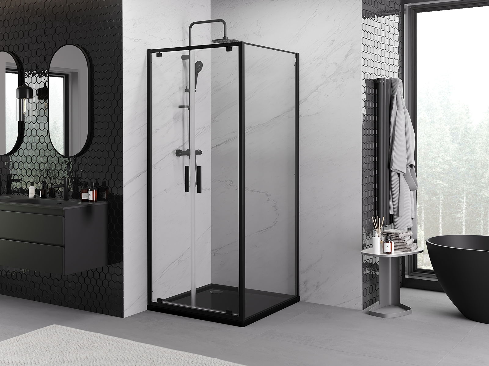 Thanks to the use of a universal mounting system, shower doors can be installed on the right or left side, depending on your needs. This allows you to easily design a shower tailored to the bathroom space.
