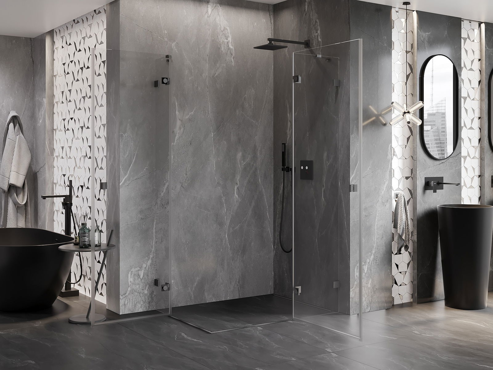 A handy and comfortable handle made from durable and resistant metal. Its trendy shape combined with a finish matched to the colour of the profiles gives the whole a modern and stylish look, highlighting the aesthetics of every bathroom.