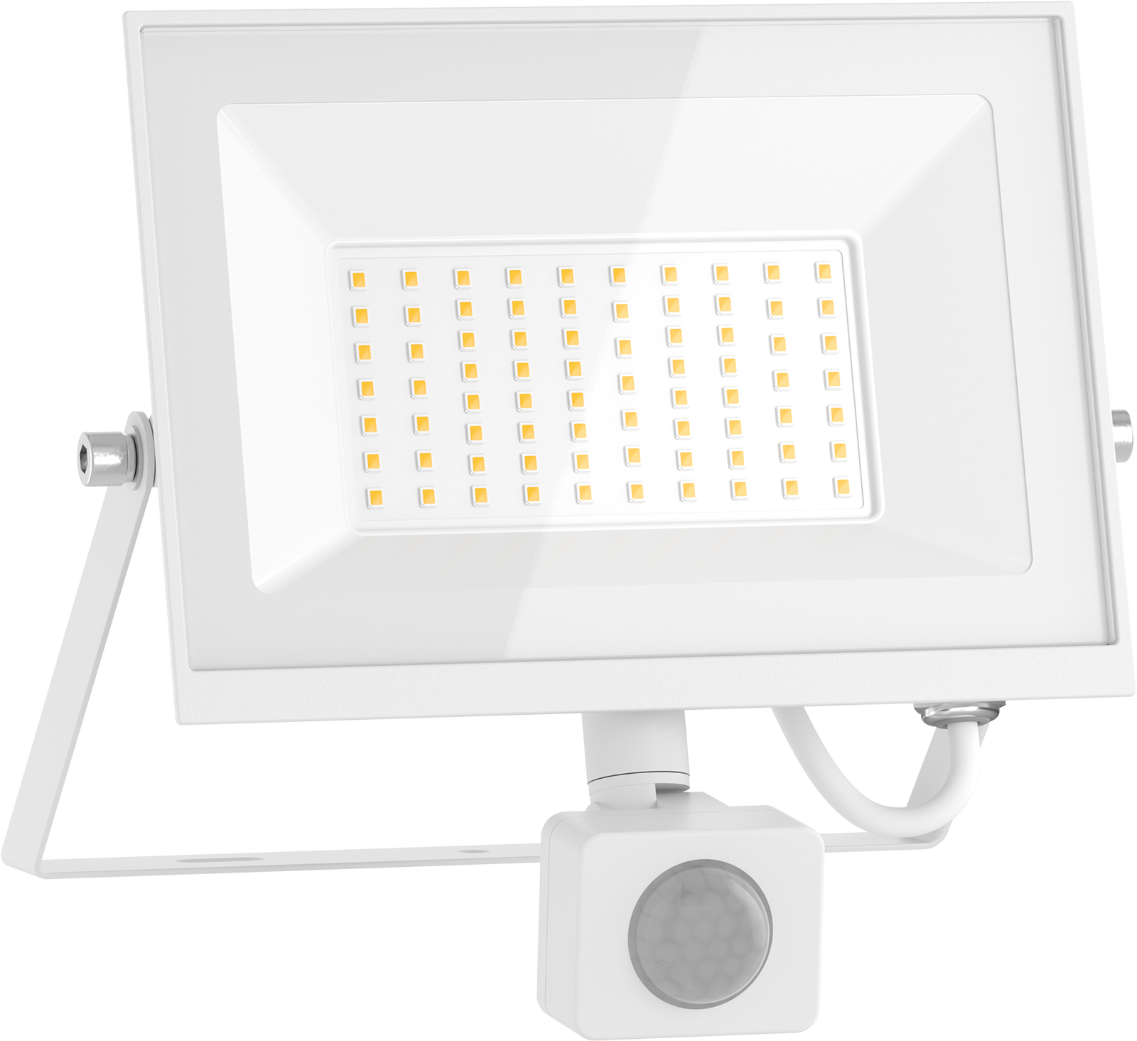 The LED floodlight with a PIR sensor detects the movement of people or animals within a range of 2–10 m. It automatically turns on only when someone is in its operational field, providing effective lighting for the property. This increases safety and convenience.