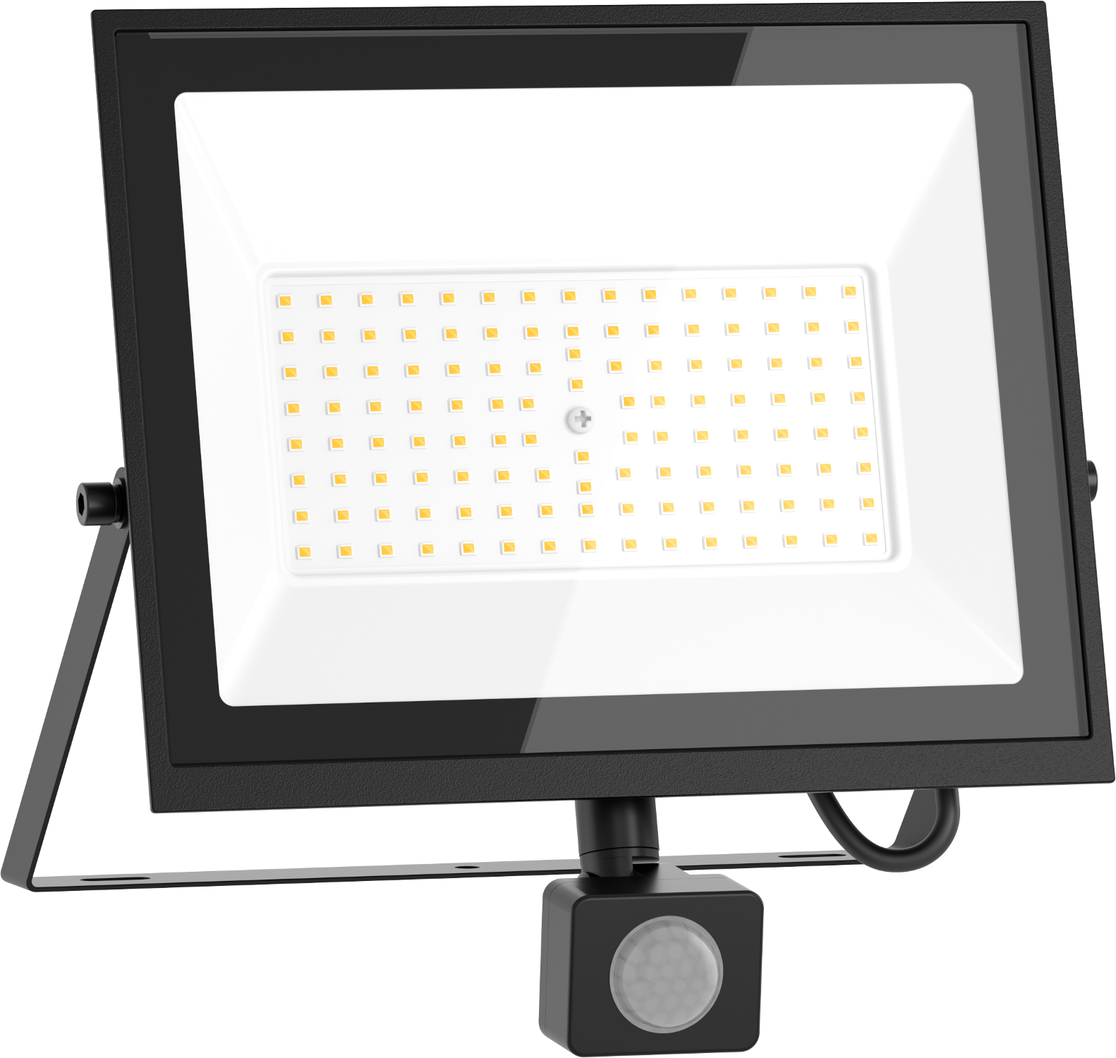 The LED floodlight with a PIR sensor detects the movement of people or animals within a range of 2–10 m. It automatically turns on only when someone is in its operational field, providing effective lighting for the property. This increases safety and convenience.