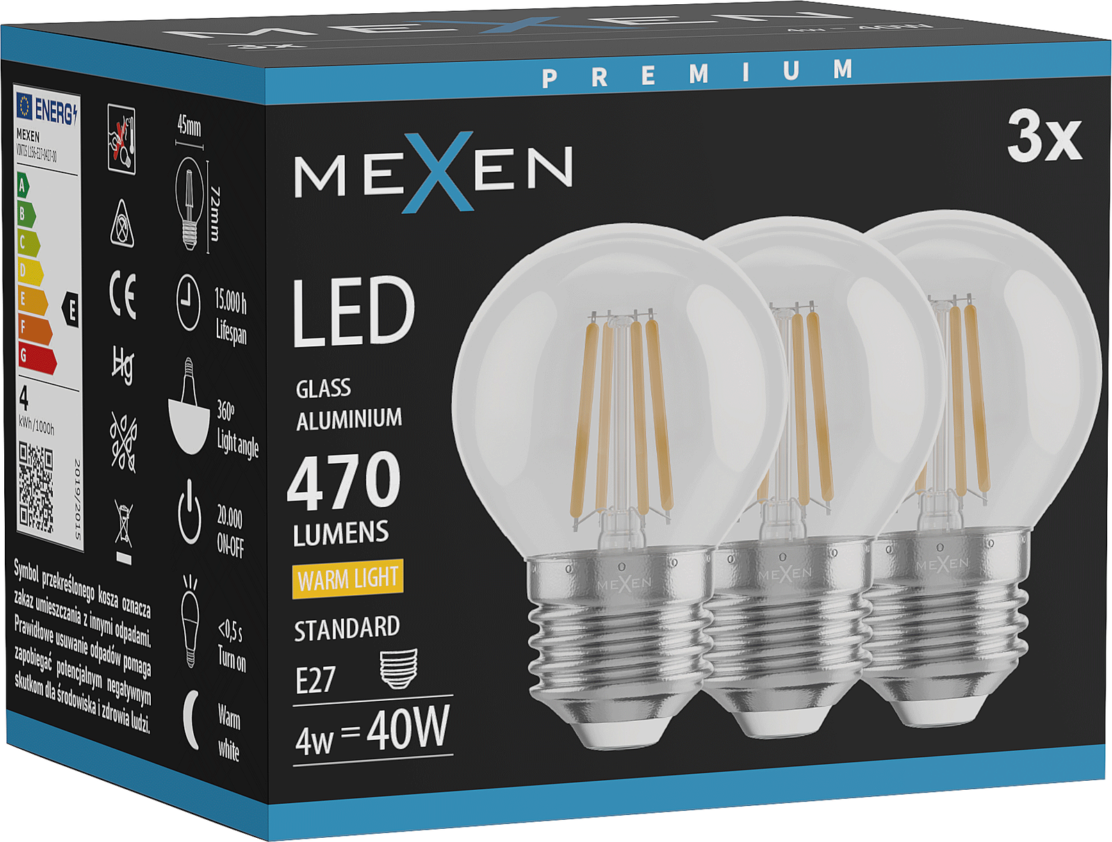 Luminous flux: 470 lm
