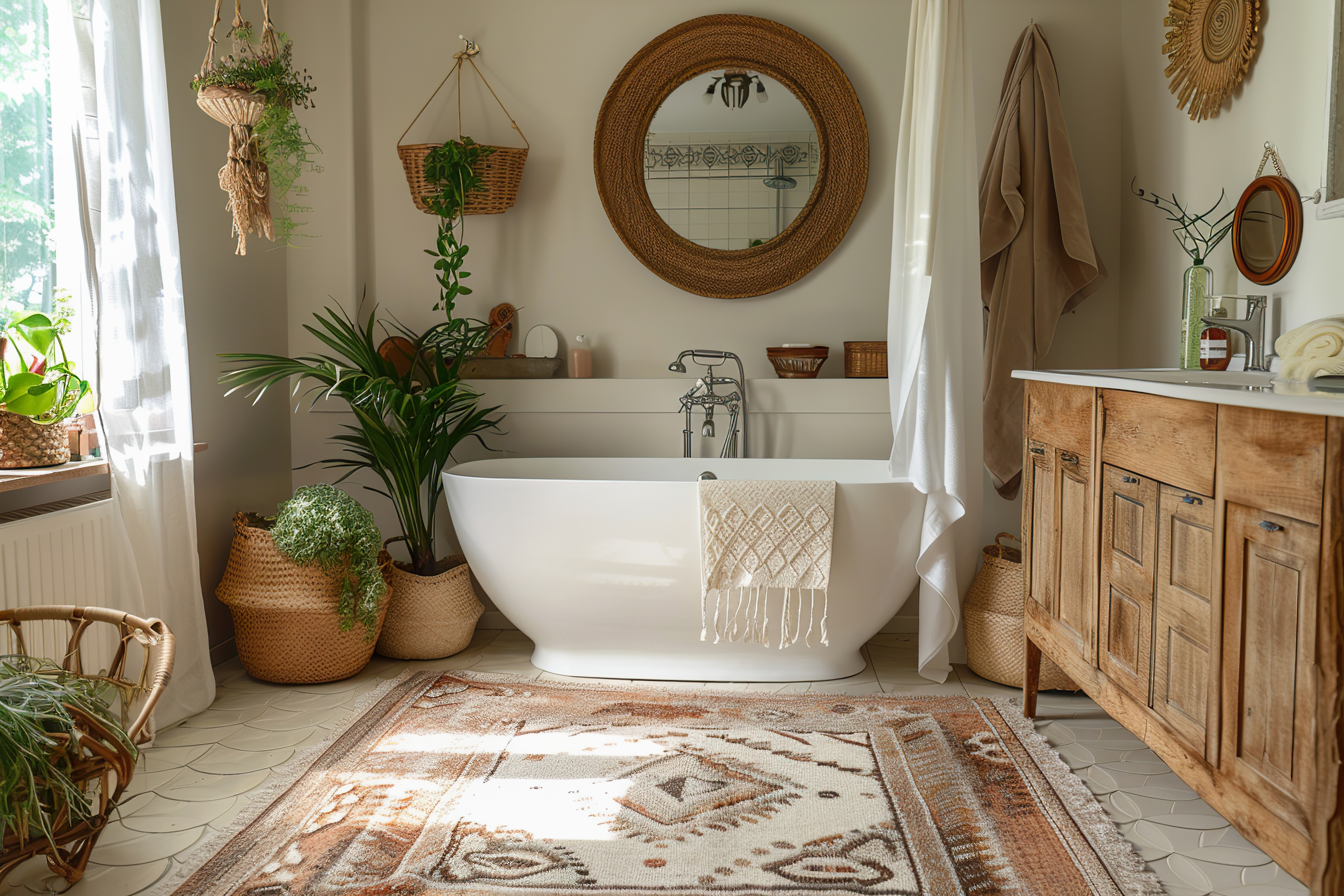 A well-designed boho-style bathroom is a space where you can escape from everyday life and truly relax. However, forget about the vibrant colors and excess fringes popular in previous seasons. The contemporary boho bathroom, in its new organic modern look, has matured and gained elegance. It's a style celebrating nature's imperfections and craftsmanship. Discover how to bring the atmosphere of luxurious resorts in Tulum or Ibiza into your home.