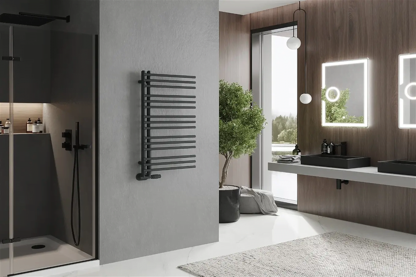 The bathroom radiator should be mounted in a place that allows for easy access and ensures even heat distribution throughout the bathroom, preventing moisture from settling on the room walls. Most bathroom radiators are installed near the bathtub or sink – especially if it is a ladder radiator used additionally for drying towels or clothes.