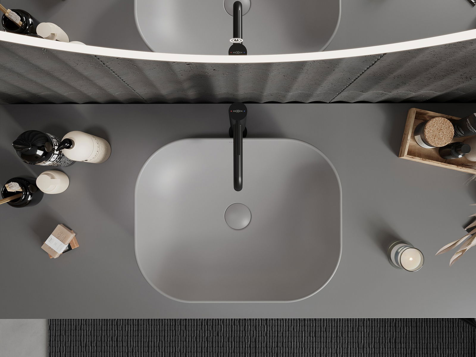 Eng keramiks Uewerfläch mat matte Textur ënnersträicht de Charakter vun der Faarf vum Produkt perfekt a gëtt him en eenzegaartegt an aussoosstarke Finish. Déi subtil Struktur vun der matte Keramik bréngt Eleganz an d'Buedzëmmer an schaaft en ästheteschen Raum.