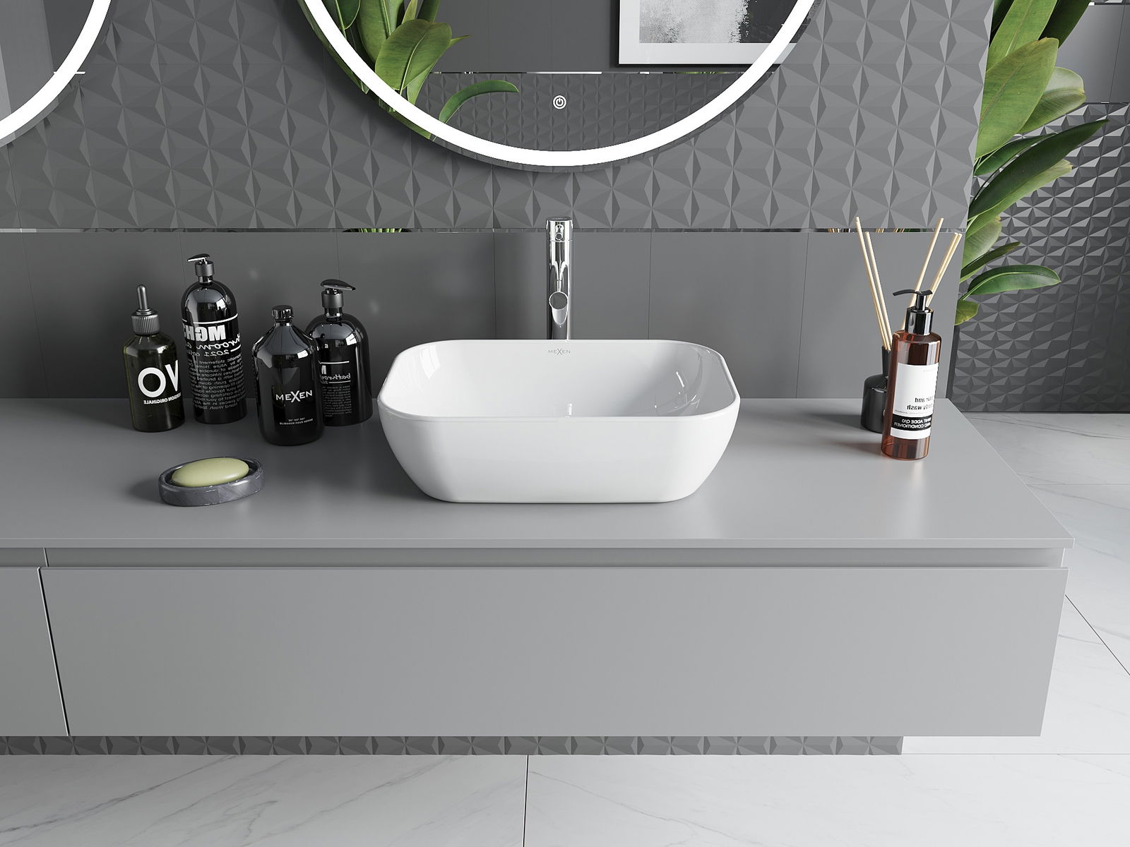 Keramik mat Glanz ass elegant a zeitlos. Et verleiht dem Buedzëmmer en eenzegaartegen Glanz, ënnersträicht seng Esthetik an bréngt méi Eleganz an d'Raum. De Glanz reflektéiert d'Liicht, wat de Raum méi grouss a méi hell wierke léisst.