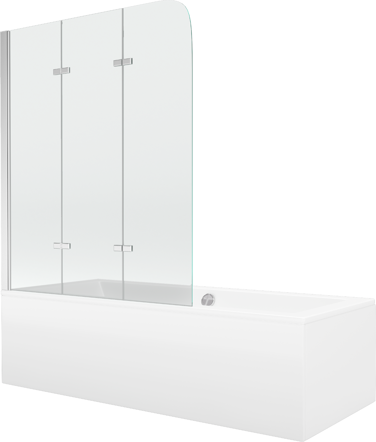 Mexen Cube rektangulär Buedbidde 170 x 80 cm mat Verkleedung a 3-Sektiounspanel 120 cm, transparent, Chrom
