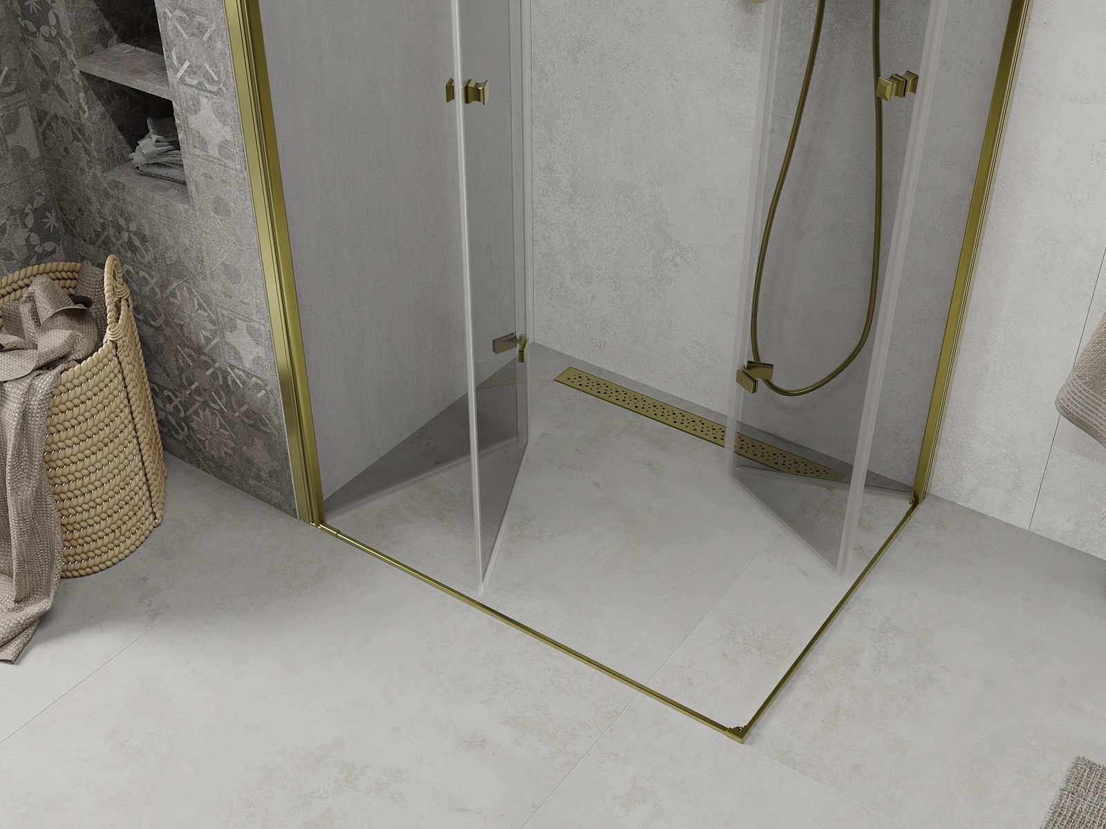 Mexen Lima Duo Klappduschkabinn 90 x 80 cm, transparent, gëllen - 856-090-080-50-00-02