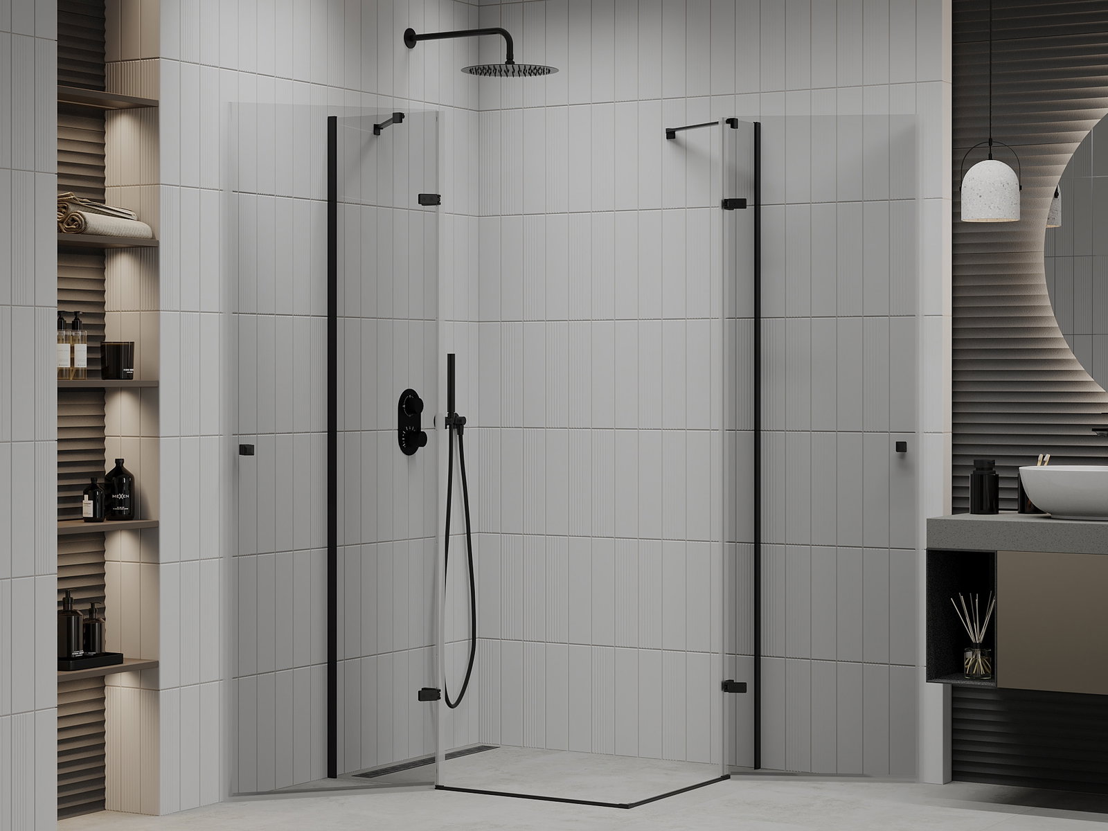Dank dem universelle Montagesystem kënnen d'Duschdieren op der lénker oder op der rietser Säit montéiert ginn, ofhängeg vun de Besoinen. Duerch dëst kënns du de Buedzëmmer-Dusch mat Liichtegkeet un de Raum upassen.