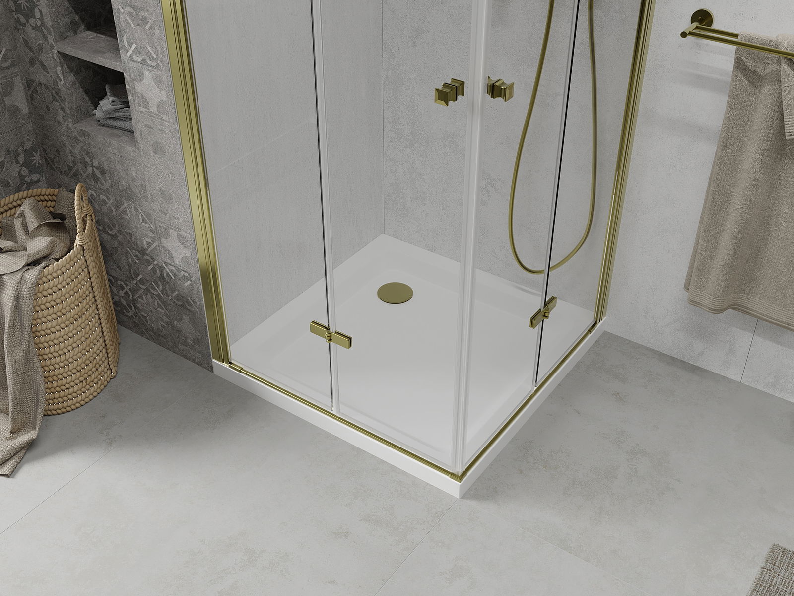 Mexen Lima Duo Klapp-Duschkabinn 70 x 70 cm, transparent, giel - matte + flaachen Duschtell - 856-070-070-50-02-4010G