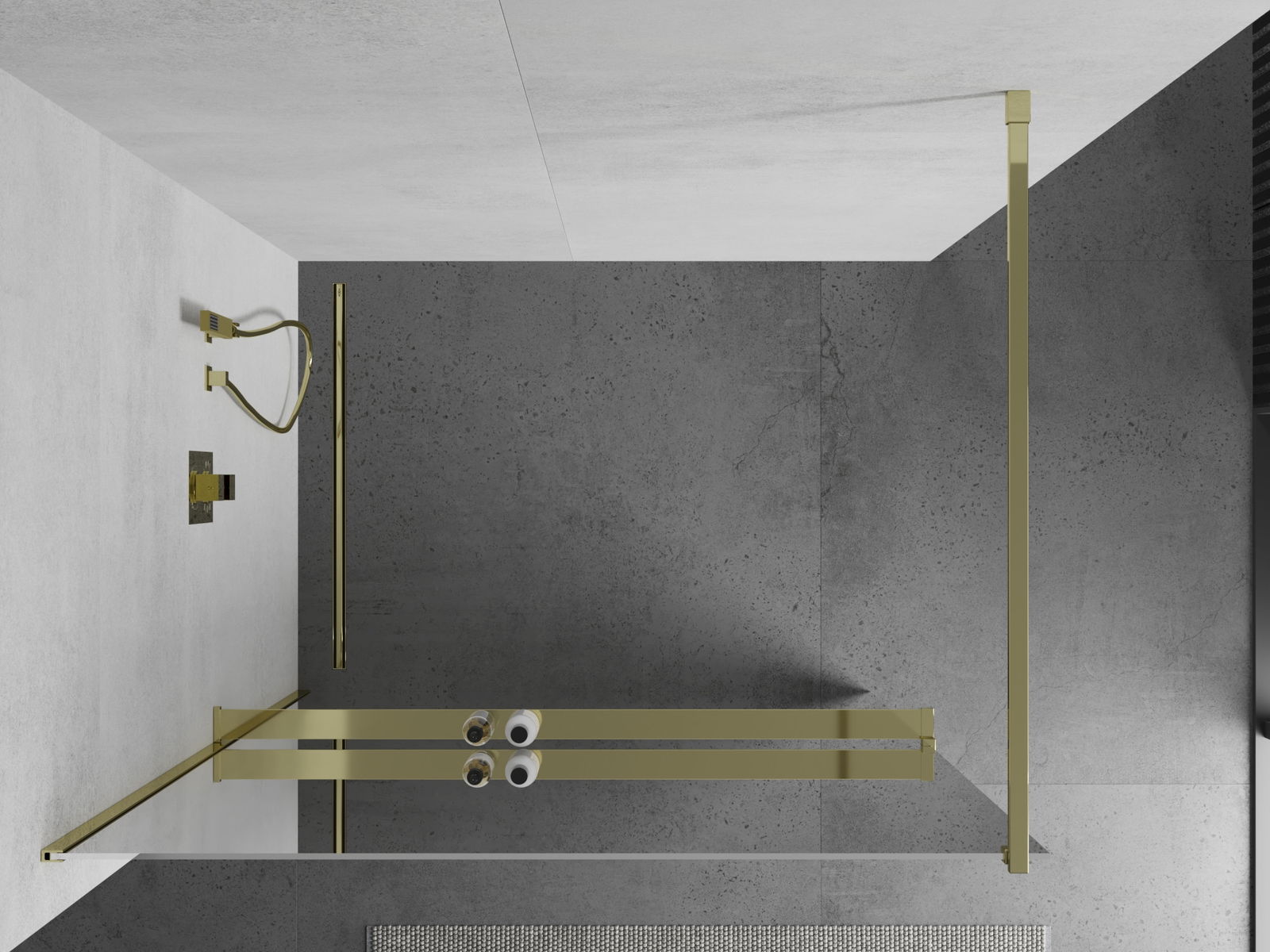 Mexen Kioto+ Duschwand mat Regal Walk-in 120 x 200 cm, Spigel, gielt - 800-120-121-50-50