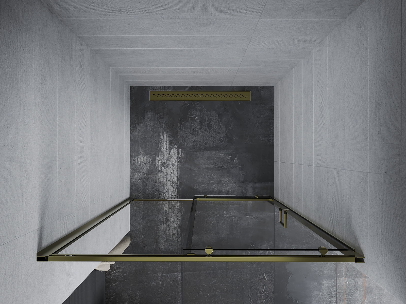Mexen Apia geschéckt Duschdier 140 cm, transparent, gëllen - 845-140-000-50-00