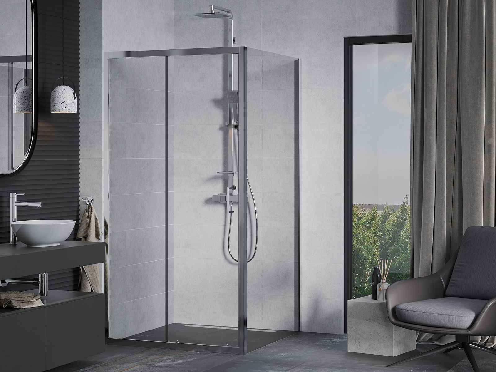 Dank dem universelle Montagesystem kënnen d'Duschdieren op der lénker oder op der rietser Säit montéiert ginn, ofhängeg vun de Besoinen. Duerch dëst kënns du de Buedzëmmer-Dusch mat Liichtegkeet un de Raum upassen.