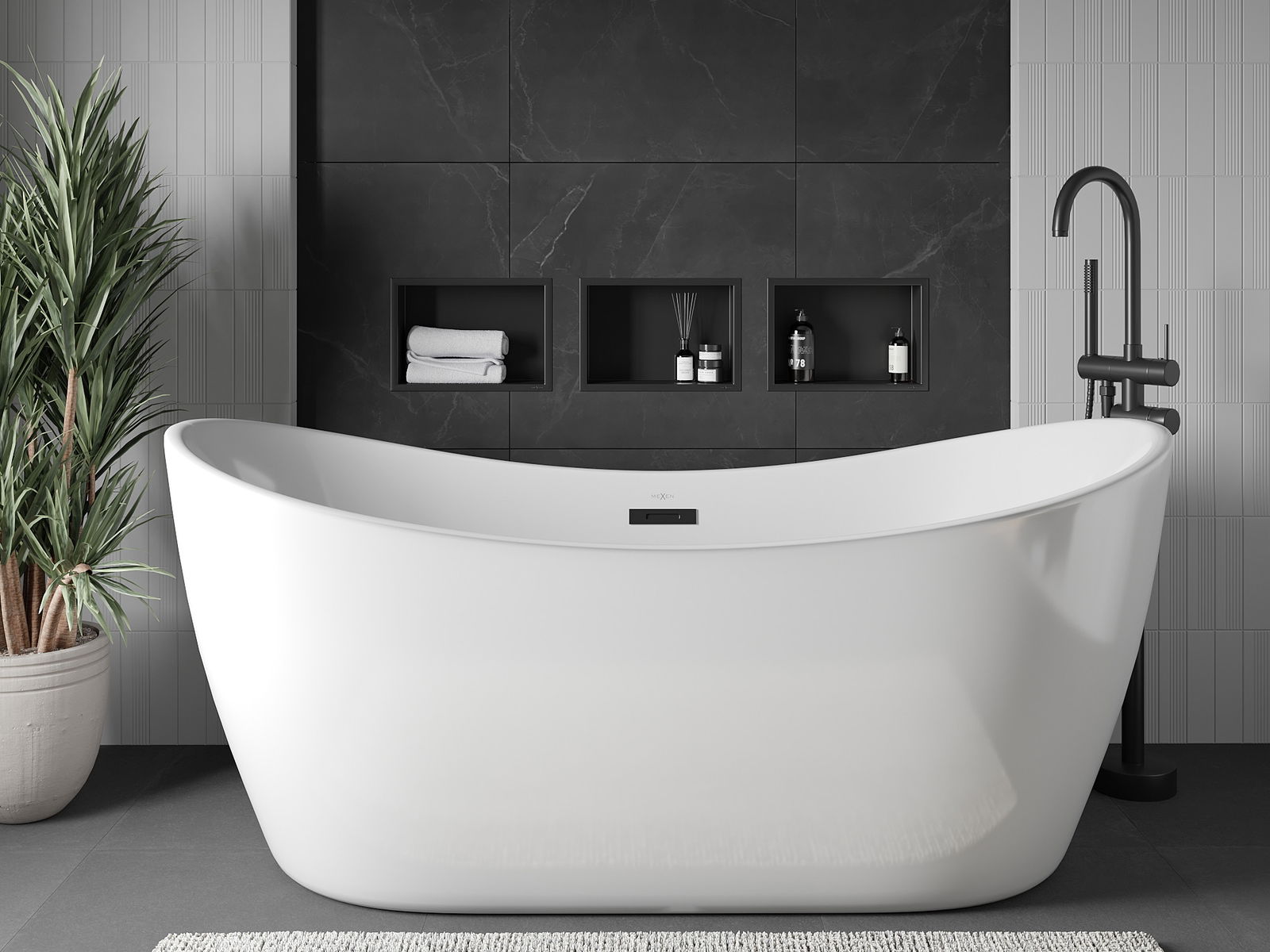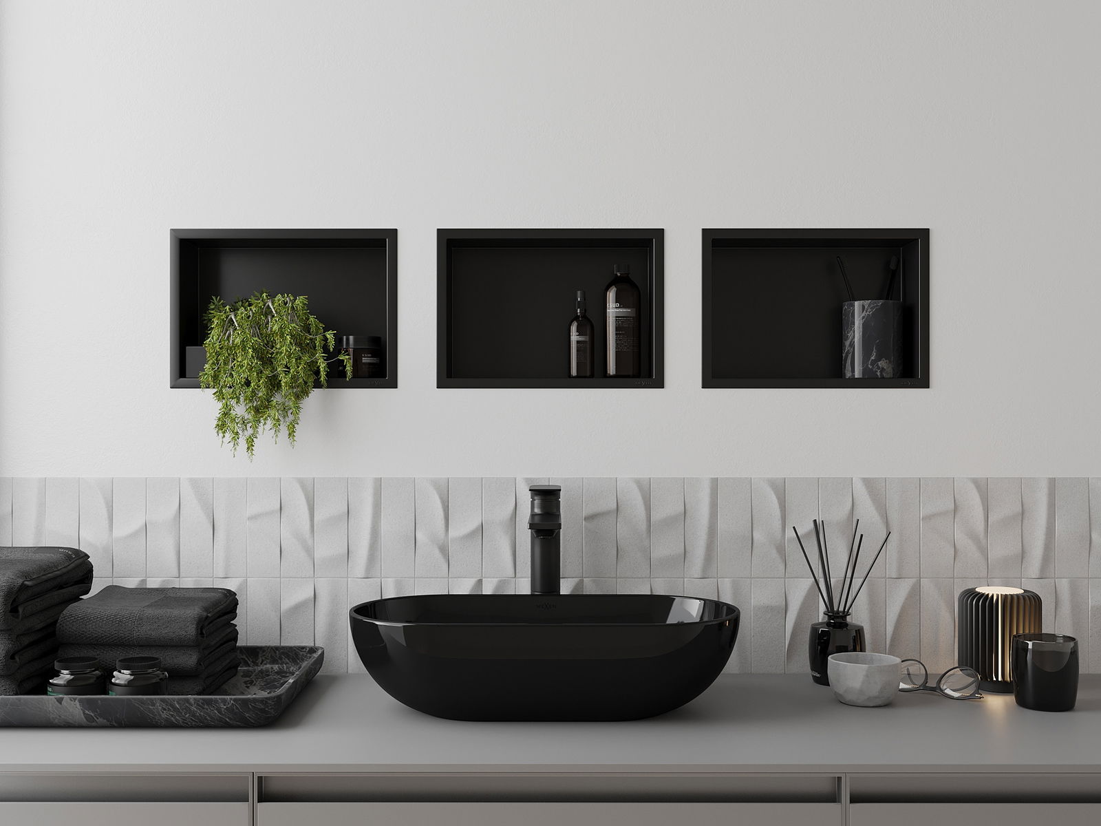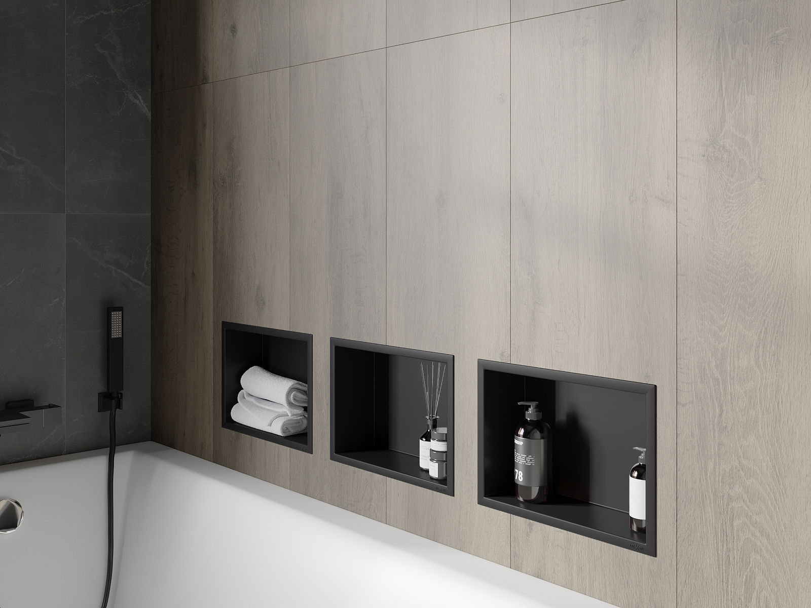 Méiglechkeet fir an der Mauer oder an enger speziell vorbereiten Déposée ze montéieren. Et ass eng extrem modern an funktionell Léisung, déi Plaz spuere léisst an de Produit un d'Esthetik vun den Interieur upassen an eng zesummegepasst Kompositioun schafen.