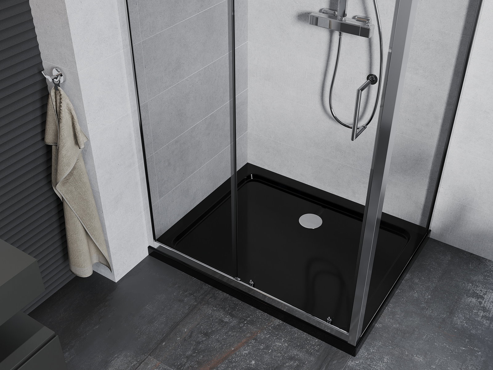 Mexen Apia rutsche Duschkabinn 130 x 70 cm, transparent, Chrom + Flat Duschtablett, schwaarz - 840-130-070-01-00-4070