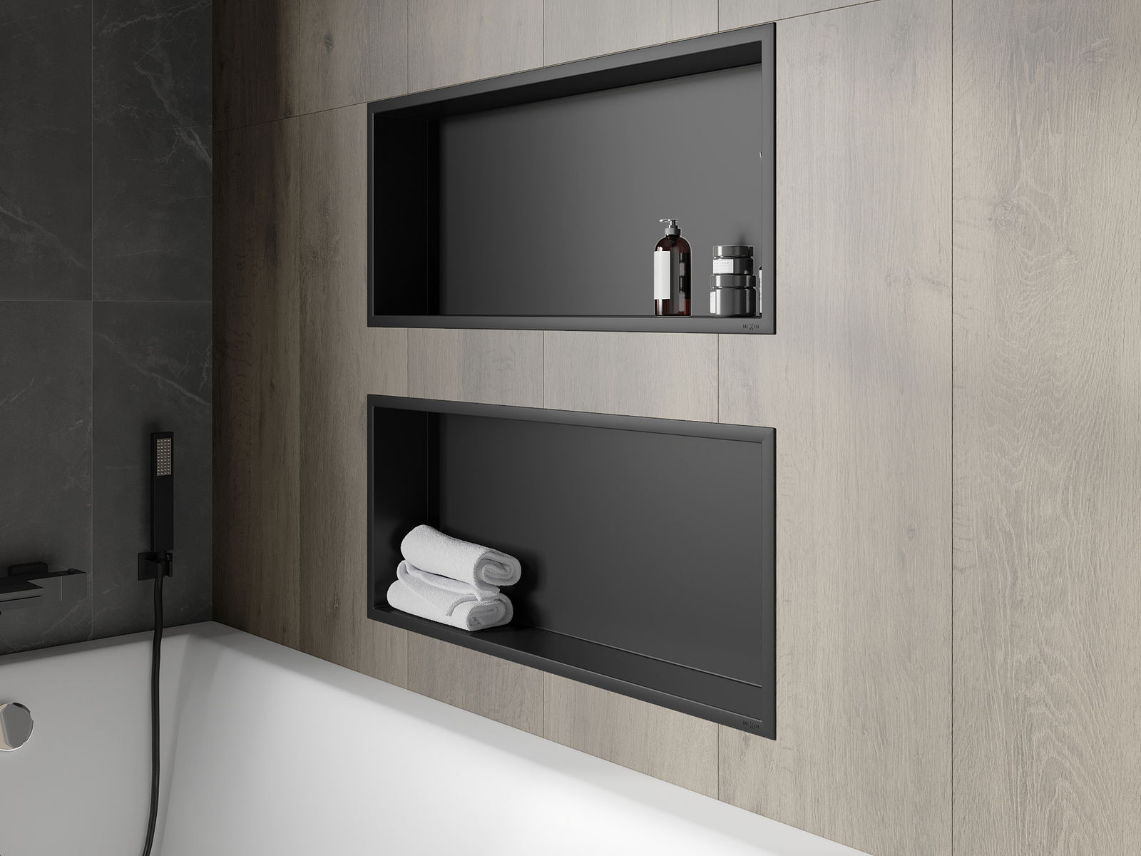 Méiglechkeet fir an der Mauer oder an enger speziell vorbereiten Déposée ze montéieren. Et ass eng extrem modern an funktionell Léisung, déi Plaz spuere léisst an de Produit un d'Esthetik vun den Interieur upassen an eng zesummegepasst Kompositioun schafen.