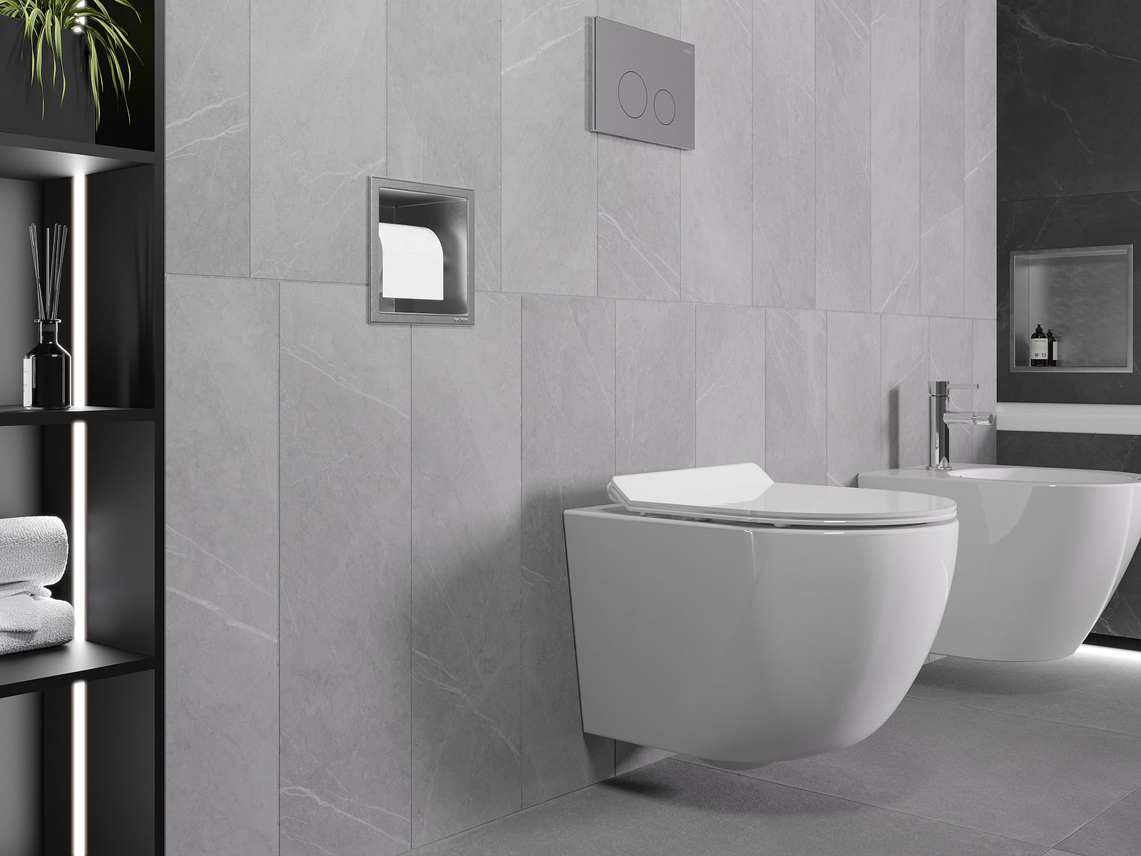 Méiglechkeet fir an der Mauer oder an der Verkleedung beim Intenerstell ze montéieren. Et ass eng aussergewéinlech modern an funktionell Léisung, déi erlaabt Raum ze spueren an de Produit un d'Aesthetik vum banneschten Deel unzepassen an eng kohärent Kompositioun ze kreéieren.