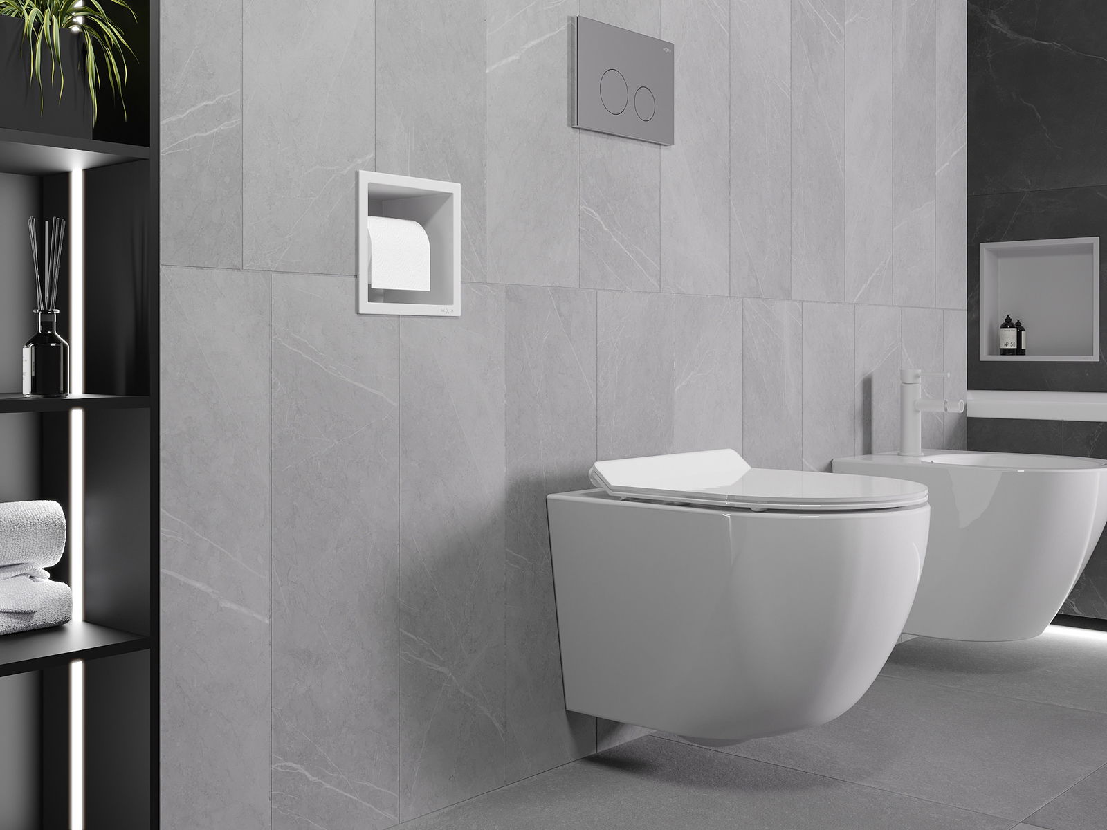 Méiglechkeet fir an der Mauer oder an der Verkleedung beim Intenerstell ze montéieren. Et ass eng aussergewéinlech modern an funktionell Léisung, déi erlaabt Raum ze spueren an de Produit un d'Aesthetik vum banneschten Deel unzepassen an eng kohärent Kompositioun ze kreéieren.