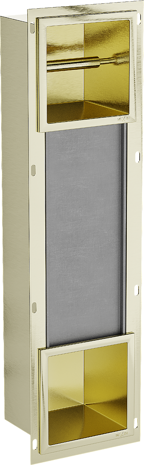 Den X-wall ass en prakteschen Toilettëpabeierhalter mat engem agebaute Späicher an der Mauer. Déi nei Rouleau ass ëmmer an der Hand, an de Raum, deen virdrun fir d'Lagerung vum Toilettëpabeier geduecht war, kënne mir op eng aner Manéier notzen.
