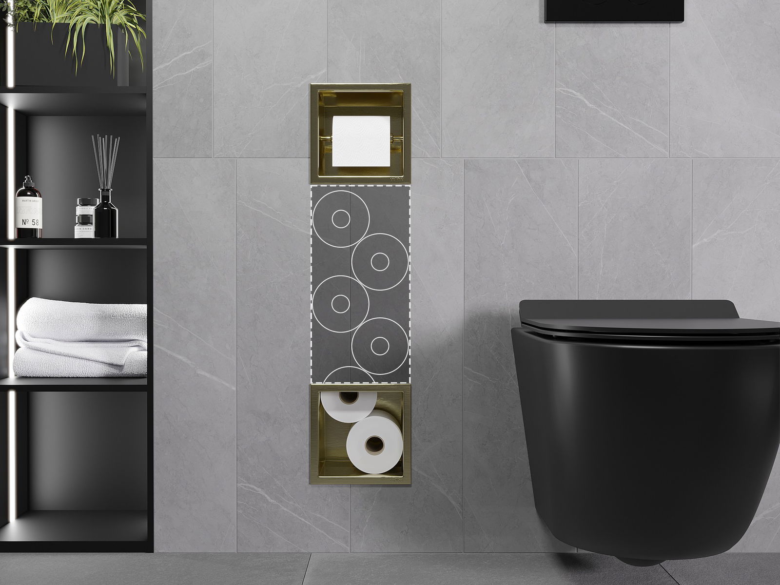 Méiglechkeet fir an der Mauer oder an der Verkleedung beim Intenerstell ze montéieren. Et ass eng aussergewéinlech modern an funktionell Léisung, déi erlaabt Raum ze spueren an de Produit un d'Aesthetik vum banneschten Deel unzepassen an eng kohärent Kompositioun ze kreéieren.