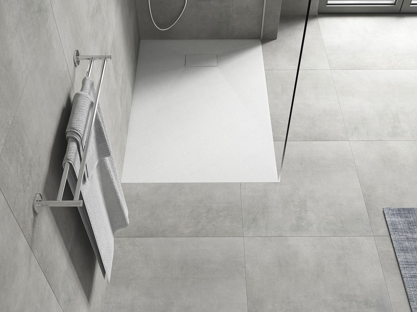 Déi geréng Héicht vum Douchebecken erlaabt eng traditionell Installatioun op de Buedem oder andeems se an de Buedem gesat gëtt, déi eng aussergewéinlech, eenheetlech Uewerfläch schaaft. D'Flexibilitéit vun der Installatioun erlaabt de Douchebecken un verschidden Interieurarrangementer unzepassen.