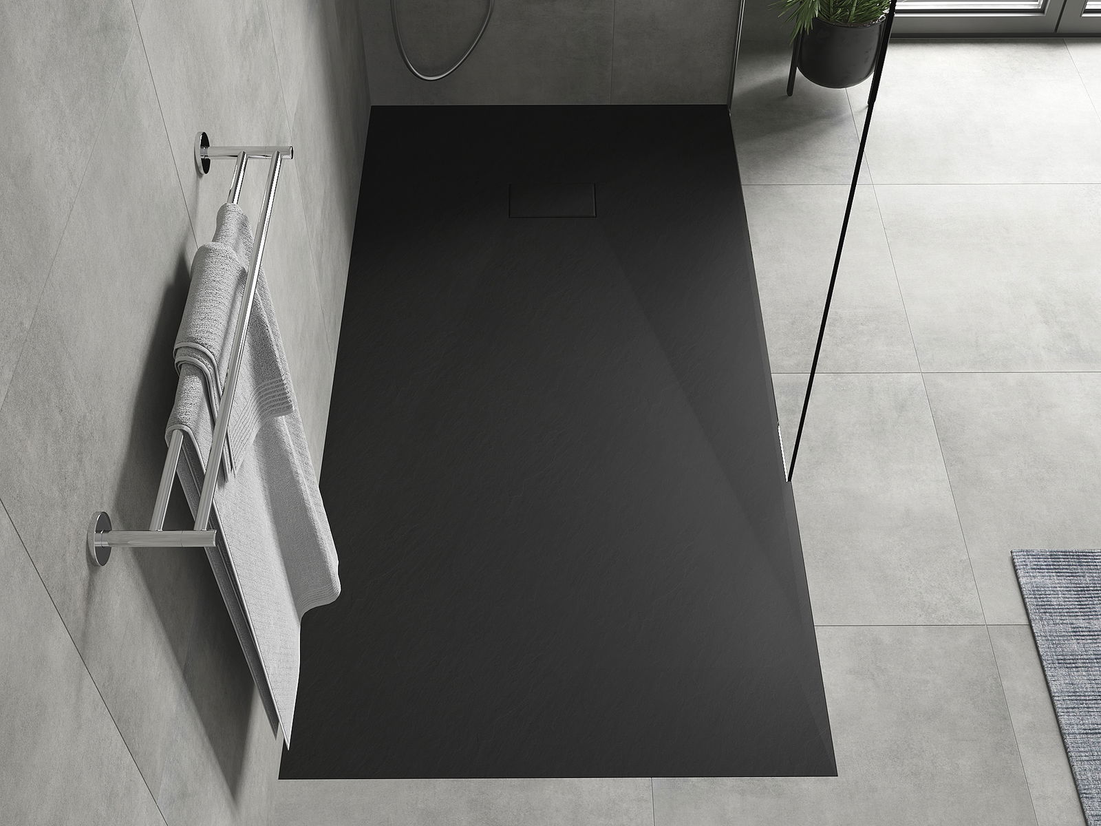 Déi geréng Héicht vum Douchebecken erlaabt eng traditionell Installatioun op de Buedem oder andeems se an de Buedem gesat gëtt, déi eng aussergewéinlech, eenheetlech Uewerfläch schaaft. D'Flexibilitéit vun der Installatioun erlaabt de Douchebecken un verschidden Interieurarrangementer unzepassen.