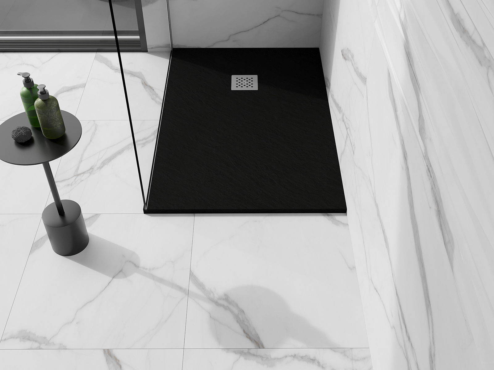 Déi geréng Héicht vum Douchebecken erlaabt eng traditionell Installatioun op de Buedem oder andeems se an de Buedem gesat gëtt, déi eng aussergewéinlech, eenheetlech Uewerfläch schaaft. D'Flexibilitéit vun der Installatioun erlaabt de Douchebecken un verschidden Interieurarrangementer unzepassen.