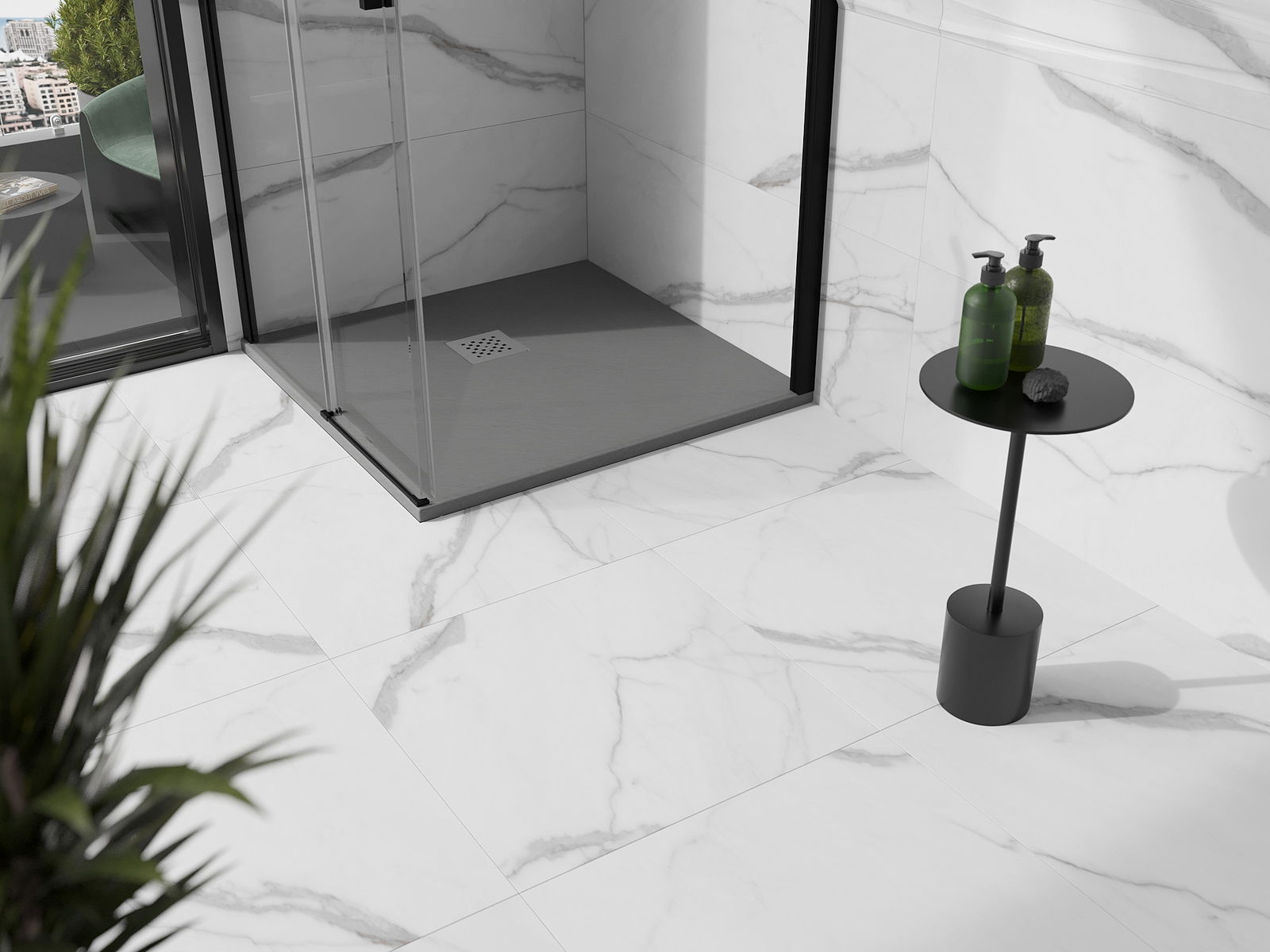 Déi geréng Héicht vum Douchebecken erlaabt eng traditionell Installatioun op de Buedem oder andeems se an de Buedem gesat gëtt, déi eng aussergewéinlech, eenheetlech Uewerfläch schaaft. D'Flexibilitéit vun der Installatioun erlaabt de Douchebecken un verschidden Interieurarrangementer unzepassen.