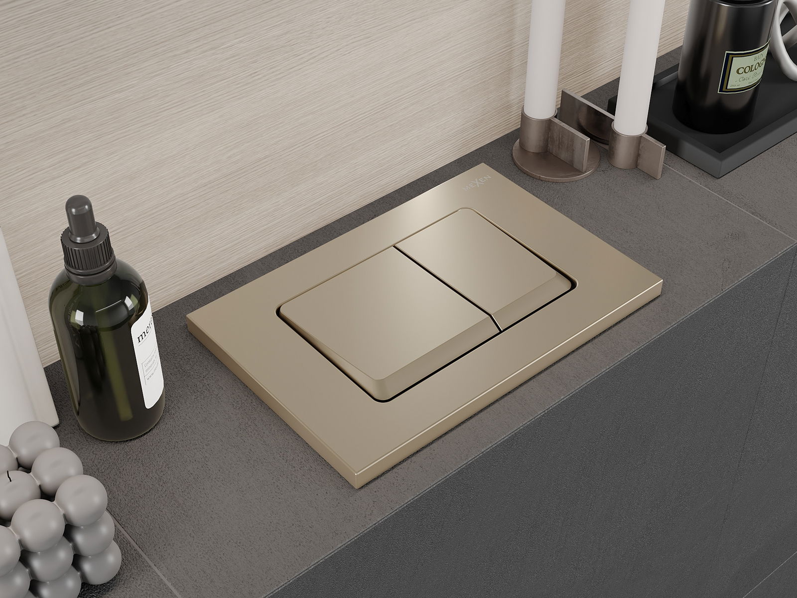 D'Spullung gëtt op déi traditionell Manéier ausgeléist - en Drécken op de Knäppchen aktivéiert eng Hebel, déi e Ventil opmécht an de Waasser spullt. Et ass eng einfach an intuitiv Léisung, déi dacks an de Buedzëmmer fonnt gëtt.