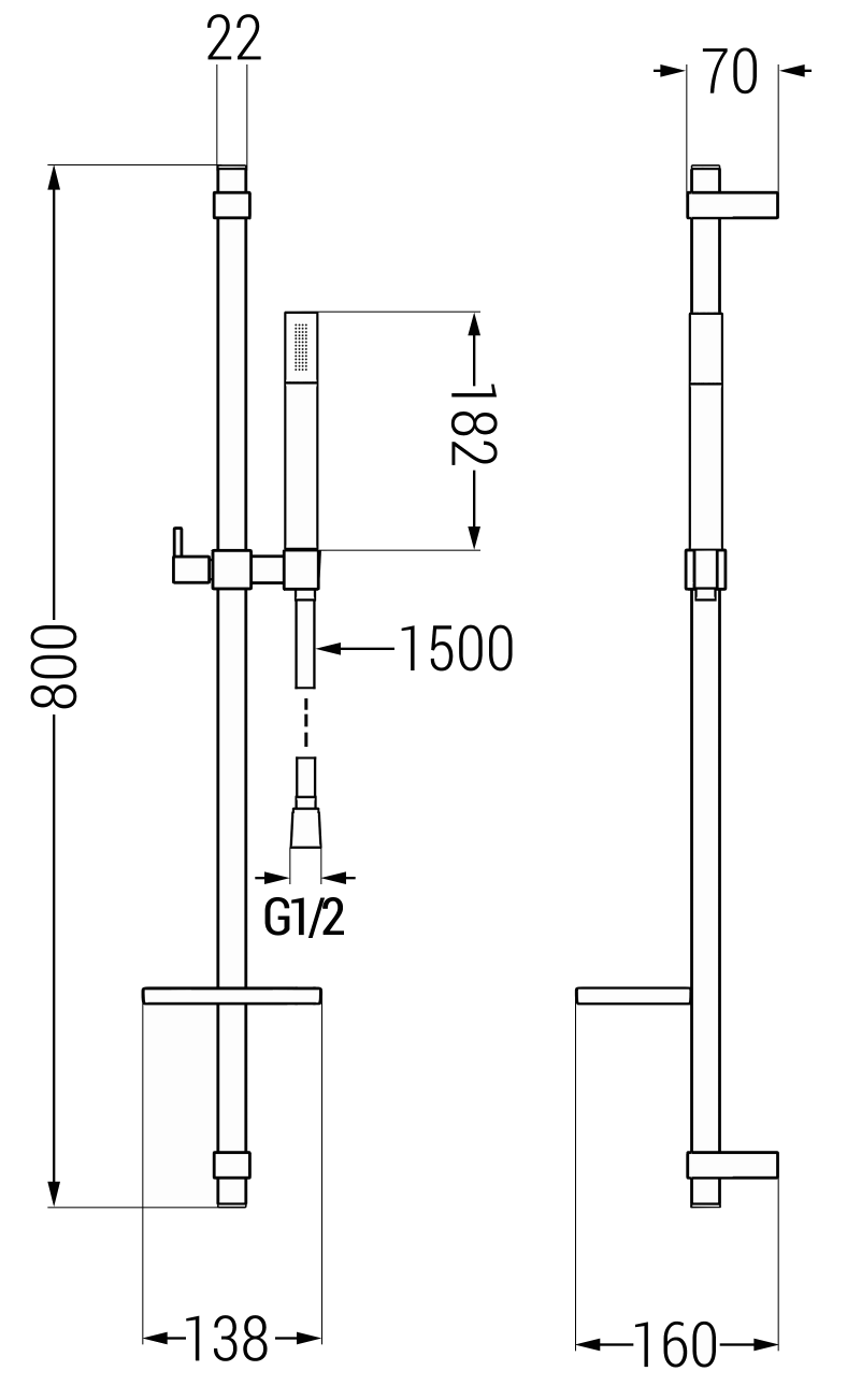 Héicht: 800 mm